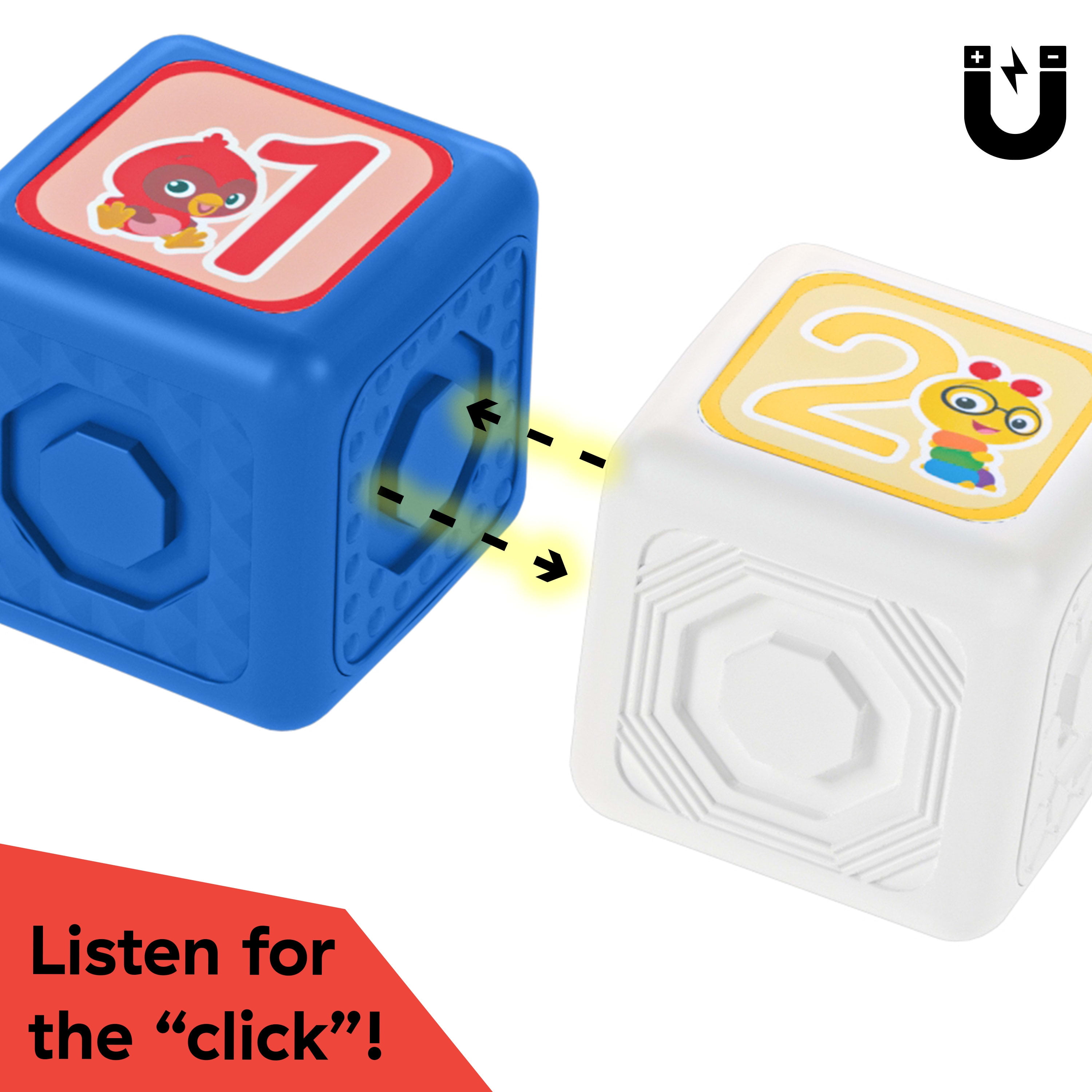 Inspire baby’s inner engineer with Baby Einstein Connectables Dive & Soar Magnetic Activity Blocks, an 11-piece land and sea set of STEAM inspired, multi-sensory, large 3-inch blocks and attachments that engage babies and toddlers in creative floor or table play. Each piece magically connects with hidden, secure magnets to ensure baby’s safety while introducing cause and effect. Join pieces together for a satisfying click to captivate baby as they stack, link, create, and grow. Infants will love to sort, match, and connect the large, easy-to-grasp blocks as they grow and develop fine motor skills. Toddlers can practice co play and build a submarine, airplane, or their own vehicle. This set features beloved characters from Baby Einstein shows and books, submarine & airplane parts like wings, wheels, propeller, and a periscope. Collect other Connectables sets to expand building options and designs as baby grows. Appropriate for ages 6 months and up. Large blocks wipe clean.