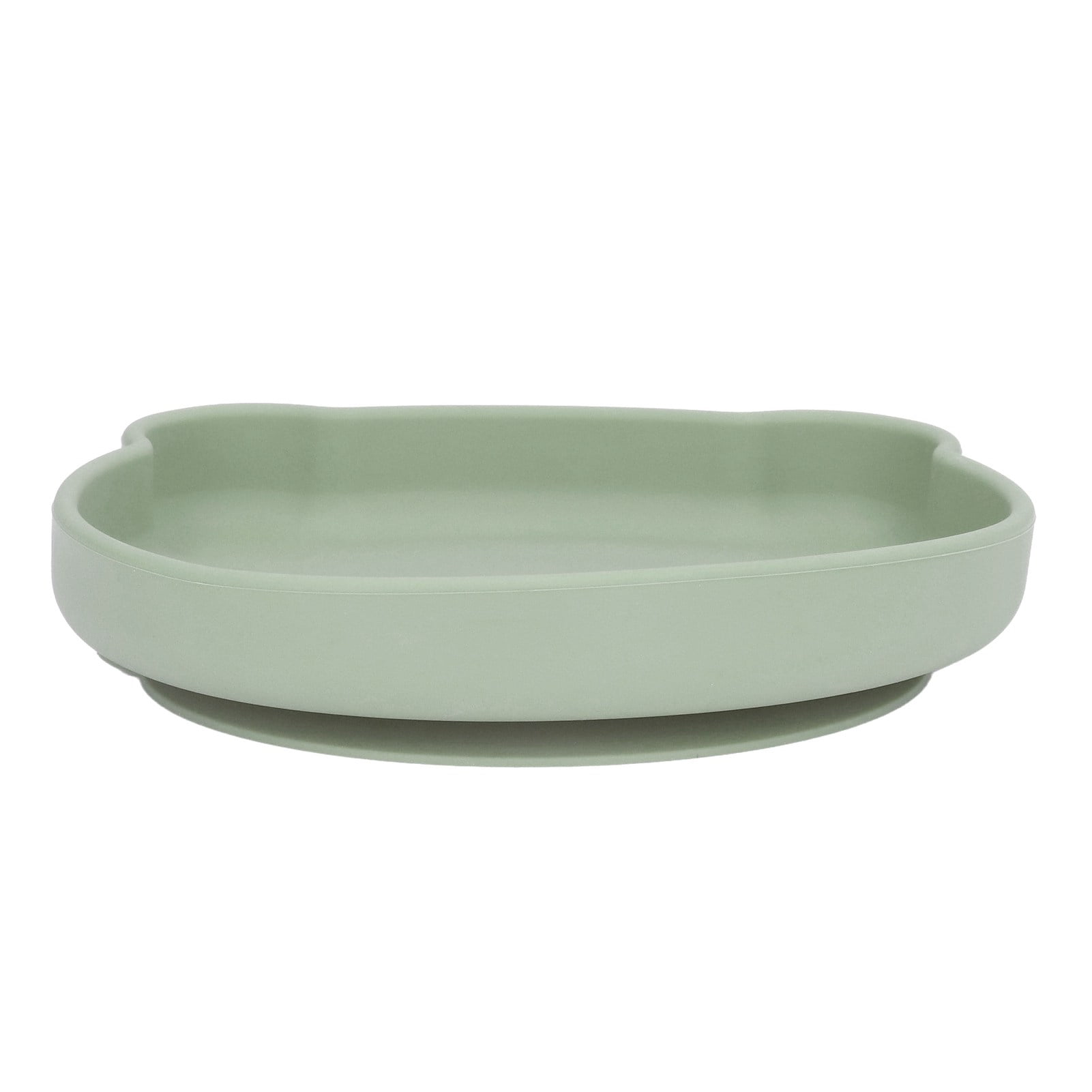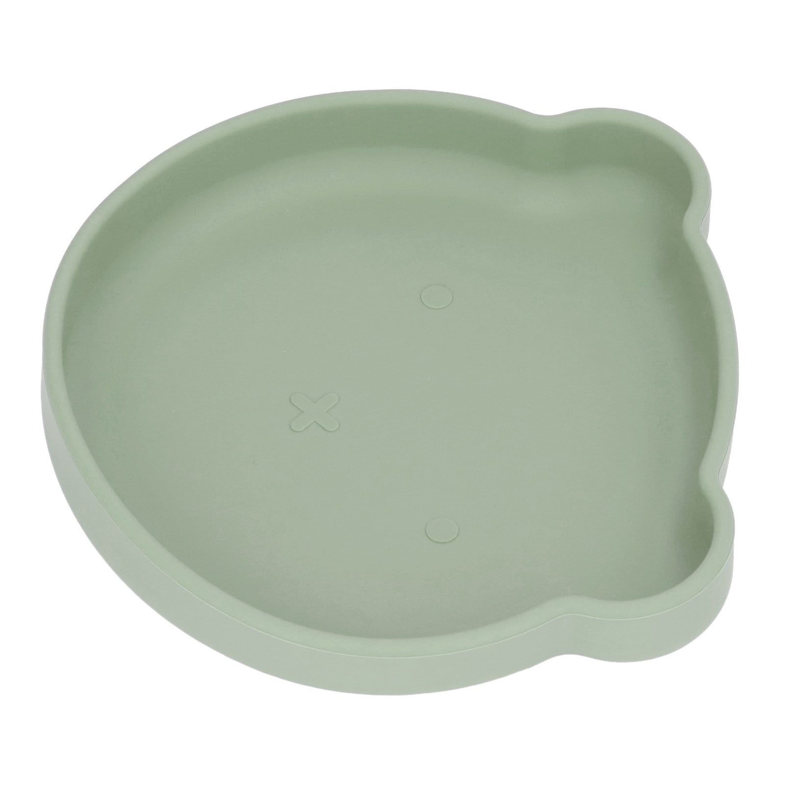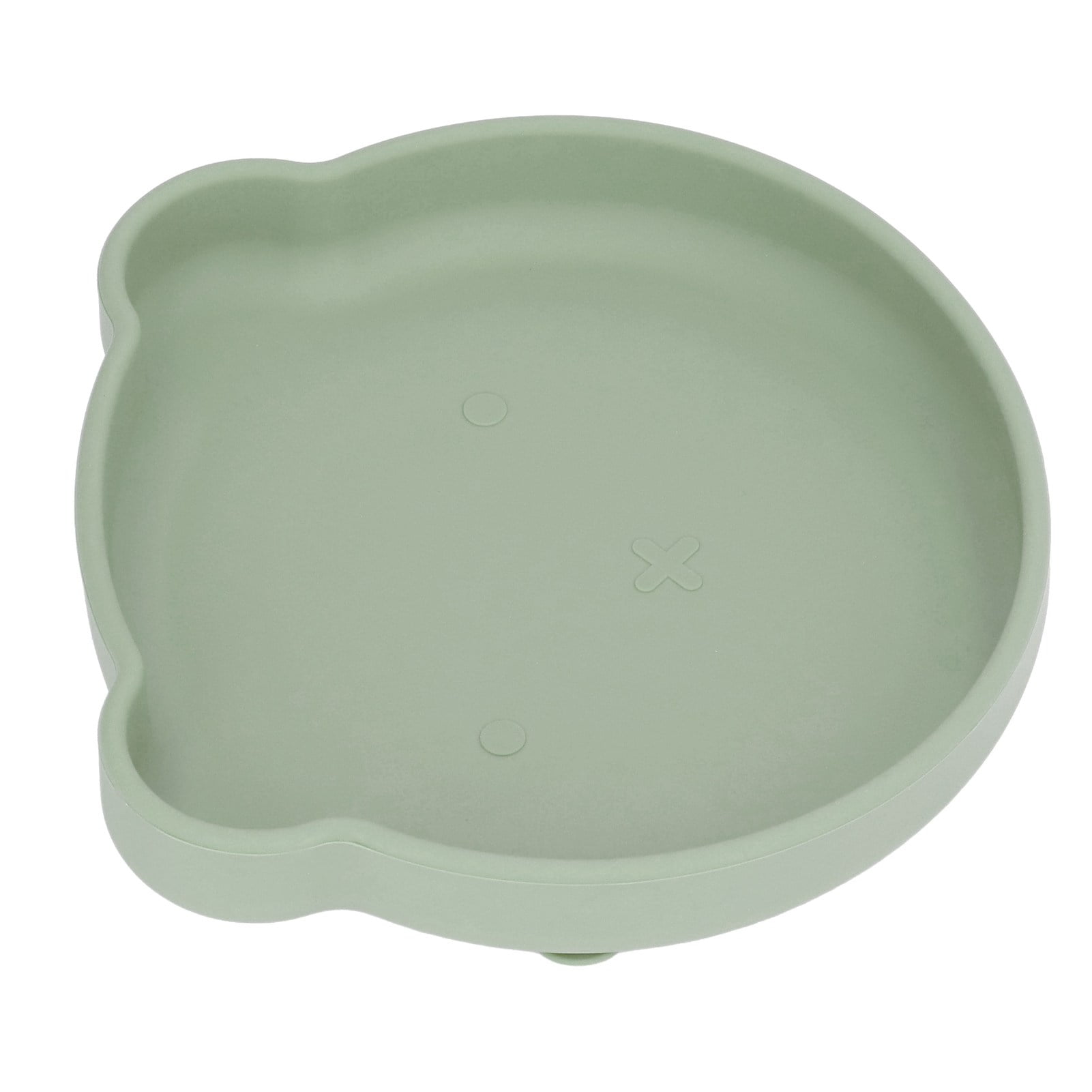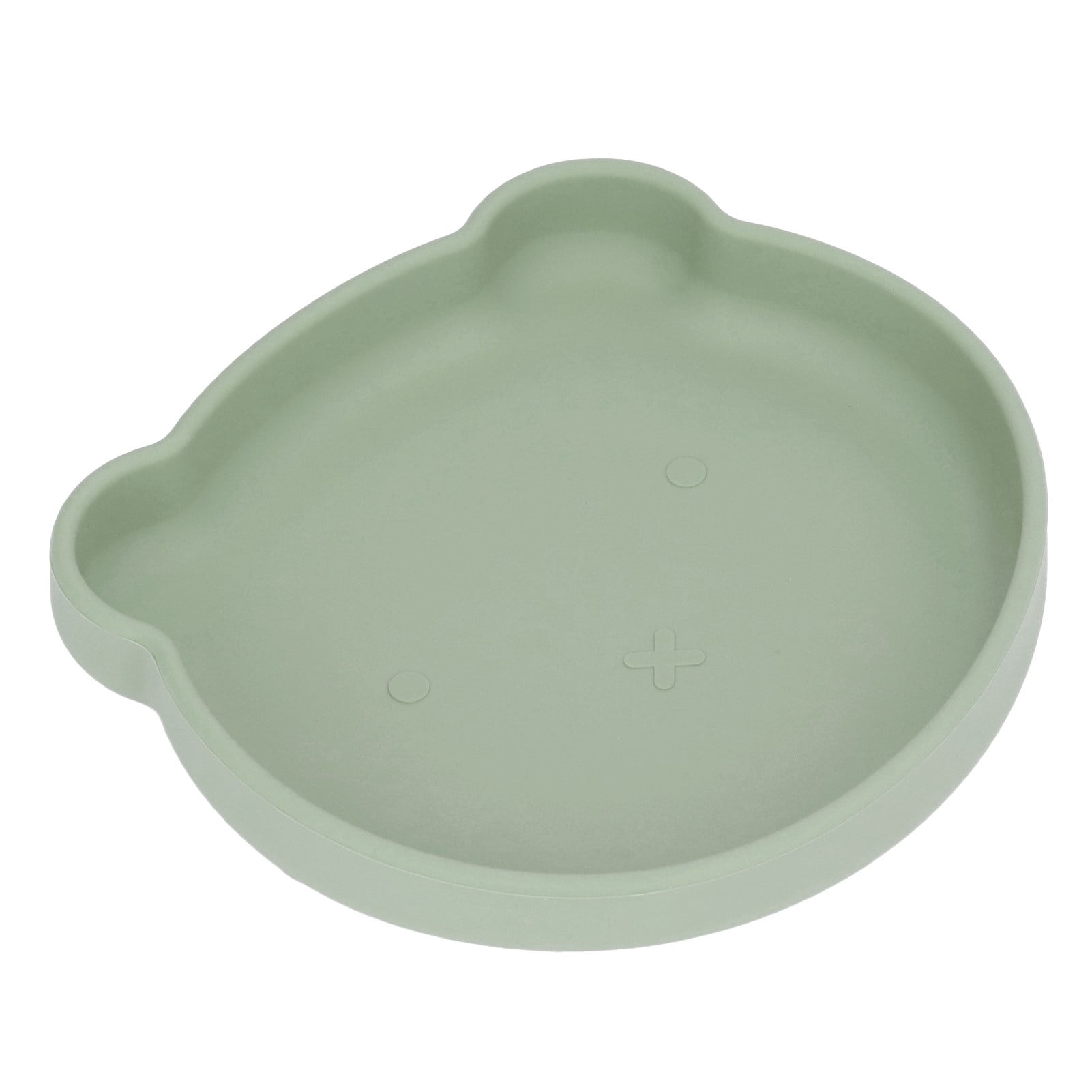 Baby Suction Utensil, Environmental Friendly Baby Suction Plate Cute Bear Shape Soft Touch Temperature Resistant Safe Material for Dinner Dark Green