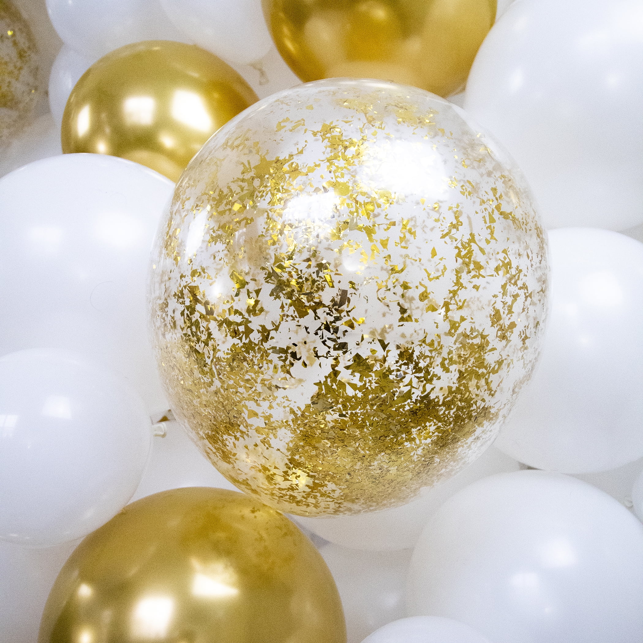 Balloon Arch Garland Kit | 150 Balloons | White and Gold Balloons, Gold Chrome and Confetti Balloons | Graduation Party, Bridal & Baby Showers, Weddings