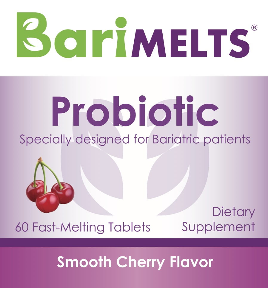 BariMelts Probiotic, Dissolvable Bariatric Vitamins, Natural Cherry Flavor, 60 Fast Melting Tablets. Probiotic formulated with Bacillus coagulants Supports digestive health Promotes gastrointestinal health Free of artificial sweeteners and flavors 60 Fast-Melting Tablets with Smooth Cherry Flavor