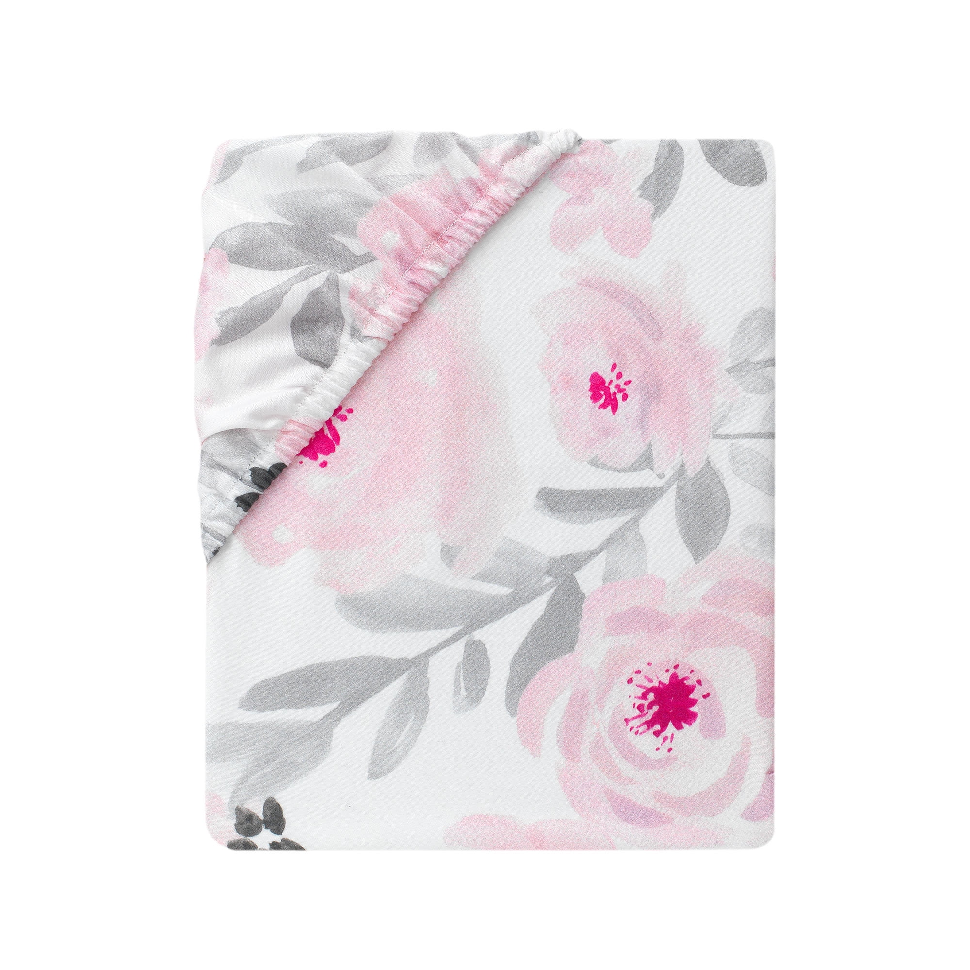 This beautiful pink and gray floral mini fitted crib sheet is made in a soft microfiber fabric. It is sized at 24” X 38” and fits most Pack N Play, portable, and mini crib mattresses. The fitted crib sheet has elastic all the way around for a safe and secure fit. It is super soft, durable, and machine washable.Please Note: This sheet is designed to fit a mini crib or porta-crib, and should fit most pack n plays; it will not fit a standard size crib.