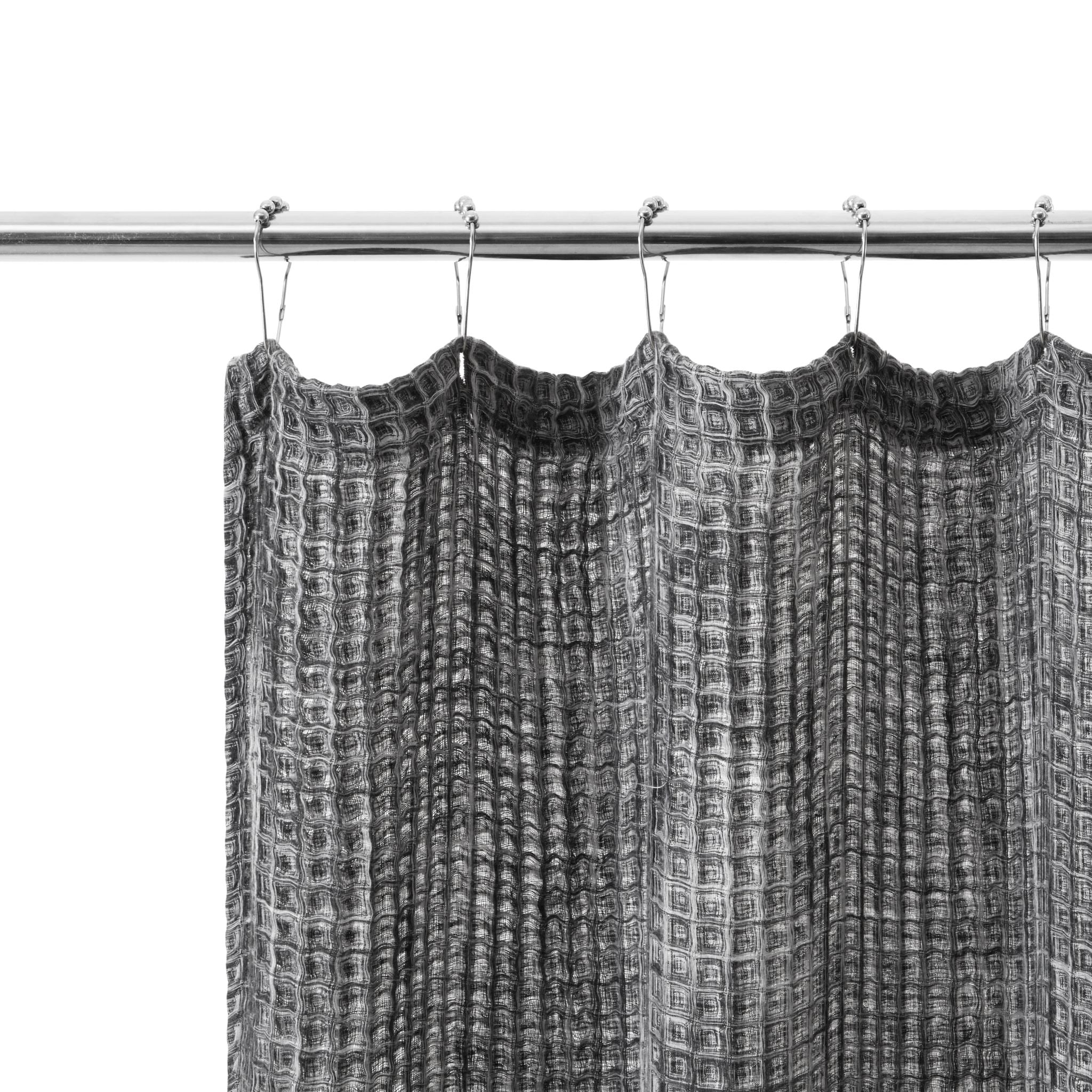 Add a soothing, spa look to your bathroom décor with the Better Home & Gardens Solid Waffle 72" x 72" Fabric Shower Curtain, Grey. The lightweight, textured waffle fabric allows light into your shower. Durable buttonhole top is compatible with various style shower curtain hooks and rings. The Better Home & Gardens Solid Waffle 72" x 72" Fabric Shower Curtain, Gray is machine washable for easy care and maintenance. We recommend pairing with a shower curtain liner in the tub. Hooks not included. Fits standard size bathtub/shower areas up to 72 inch wide. Better Homes & Gardens Solid Waffle 72" x 72" Fabric Shower Curtain, Gray featuring a textured waffle weave pattern on solid fabric for a crisp, clean look 70 inches x 72 inches and fits standard size shower or bathtub areas The durable buttonhole top construction allows for easy hanging with different style shower curtain hooks or rings The Waffle Shower Curtain is machine washable for easy care and maintenance The lightweight, textured fabric allows light into your shower.