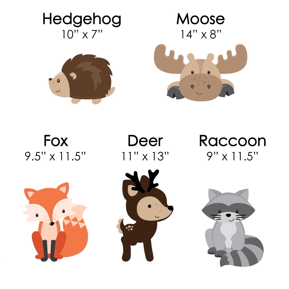 - PERFECT FOR ANY LOCATION! Woodland Creatures Yard Signs SIZE Hedgehog 10 inches x 7inches; Moose 14 inches x 8 inches, Fox 9.5 inches x 11.5 inches, Deer 11 inches x 13 inches, Raccoon 9 inches x 11.4 inches. Vibrant Forest Friends yard decor is an easy way to decorate for a Baby Shower or Birthday Party. Both adults and kids will love these Woodland party supplies. Display in front yards of your home or party venue.