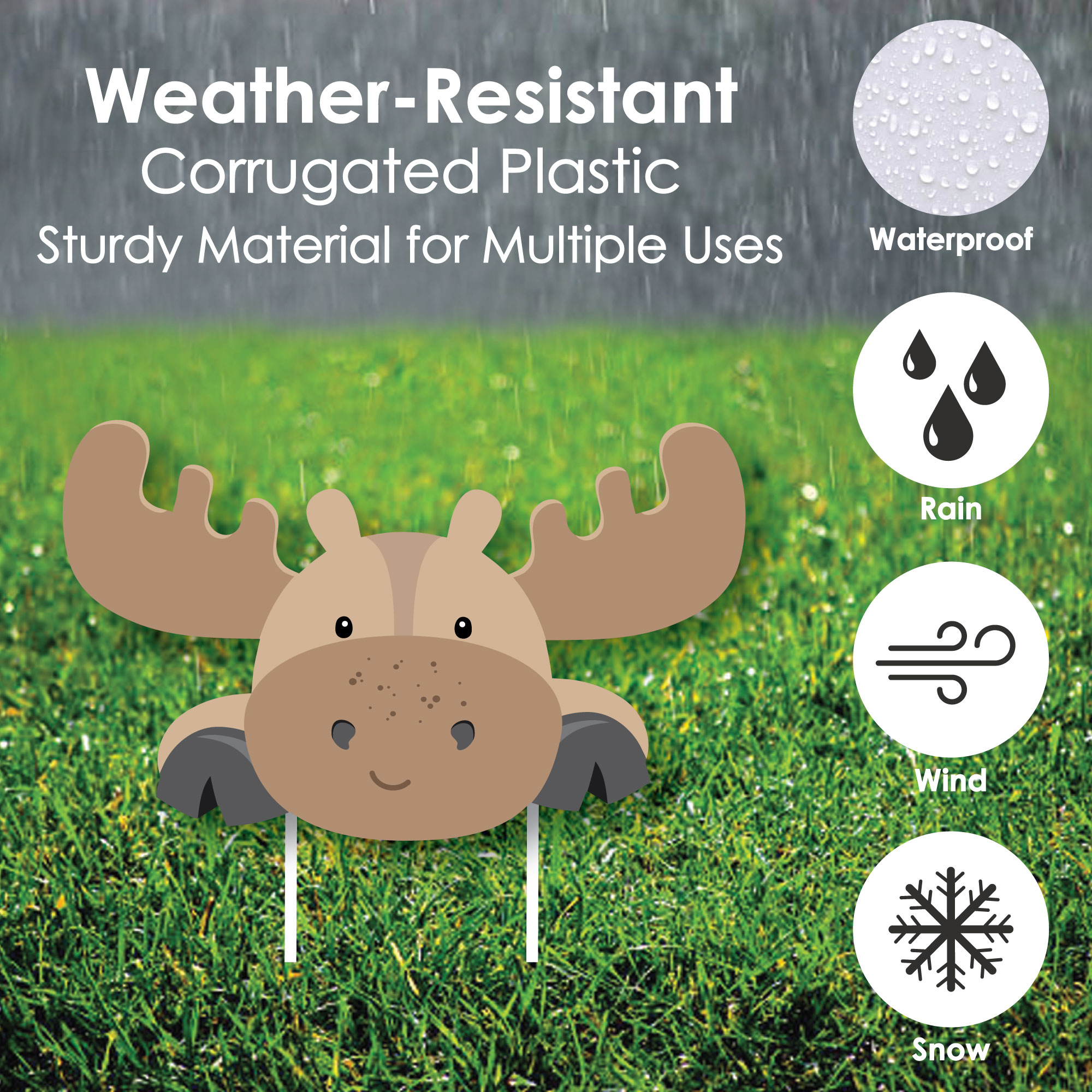 - EASY TO USE: Forest Friends – Yard Sign & Outdoor Lawn Decorations are professionally printed and cut, making assembly quick and easy. Simply insert two heavy-duty stakes into each animal yard ornament and press into the ground to display.