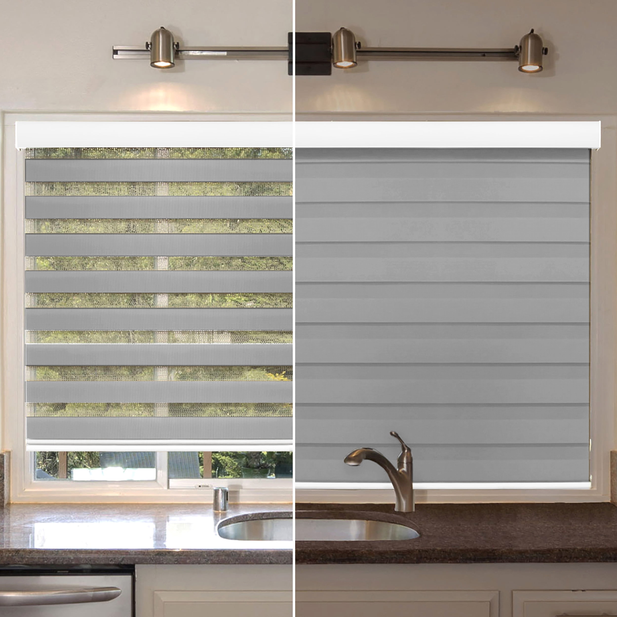 - WITH DUAL SHADE MODES: Our window blinds are dual-layered window shades with a breathable horizontal design that alternates between sheer and solid fabric. The light density may be manually adjusted to achieve the desired level of privacy and light filtration. Adjust the light effect by altering the overlap range of the two fabrics, allowing you to manage the sunlight during the day, and provide complete privacy throughout the night.