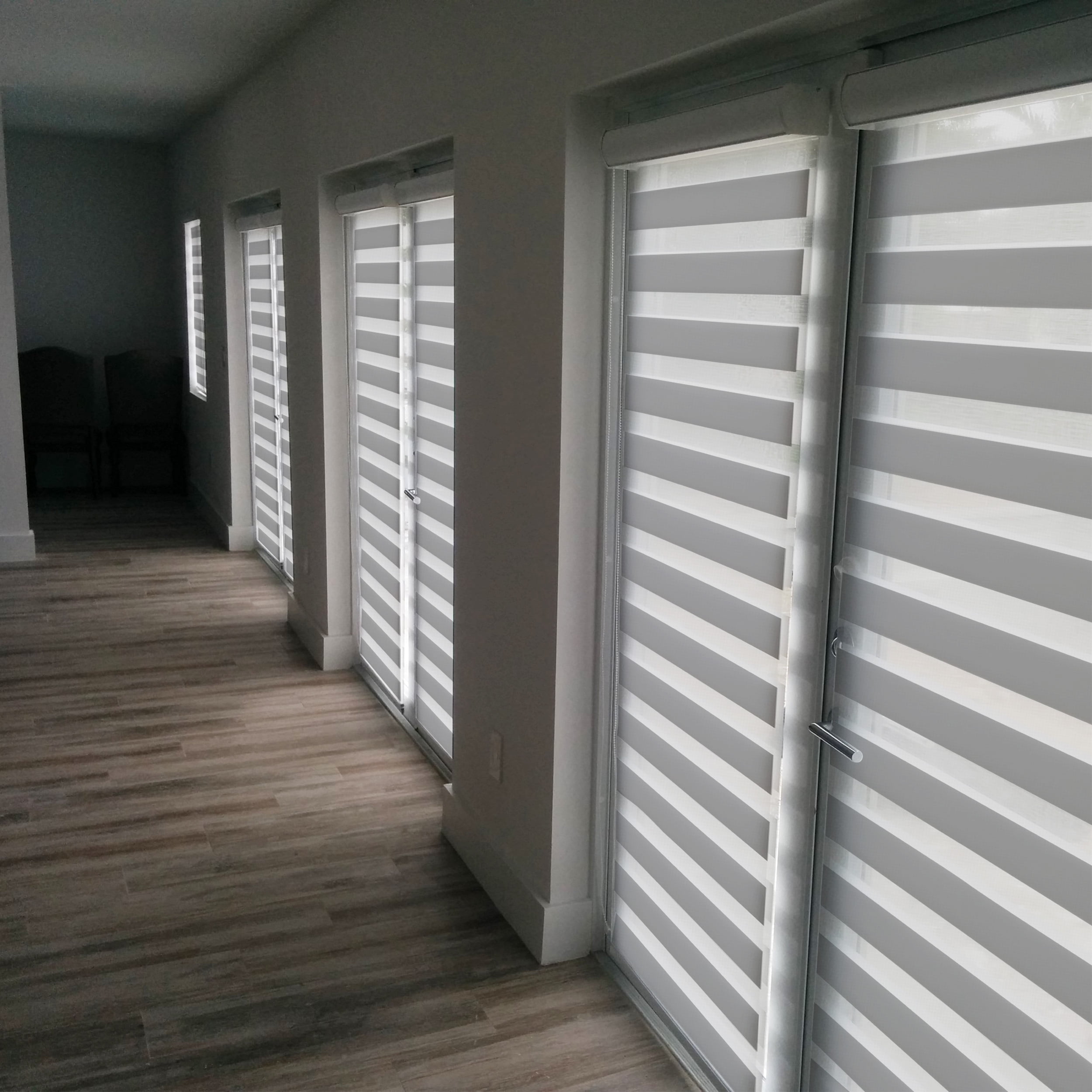 ***Features:***-Zebra blinds for windows are dual-layered window shades that enable you to easily switch between sheer and privacy-Our window blinds’ dual shade modes allow for filtering light during the day and provide full privacy at night-Our window shade’s cordless design raises and lowers easily by lifting and lowering the bottom rail; our cordless blinds are safe for kids and pets-Mounting brackets and hardware for installation of our zebra shades are included***Specification:***-Color Options: Grey-Design: Cordless, Dual Layer Horizontal Sheer Fabric and Thicker Opaque Fabric-Overall Dimension: 22"W X 72"H-Solid Vane: 3"-Sheer Vane: 2"-Mount Type: Inside, Outside, or Ceiling Mount-Light Filtering: Dual Layer & Privacy-Fabric Material: 100% Polyester-Brand: Biltek-Condition: 100% Brand New***Important Please Read:*** All blinds sizes are based on the blind top header rail width. There is about an inch gap between fabric and headrail to allow for the cordless mechanism. A minimum of 3-inches depth is required. Please allow some difference between the measurements listed and the product as they can vary slightly.***Package Includes:***-1x Cordless Zebra Roller Shades-1x Mounting Hardware-1x Instructions