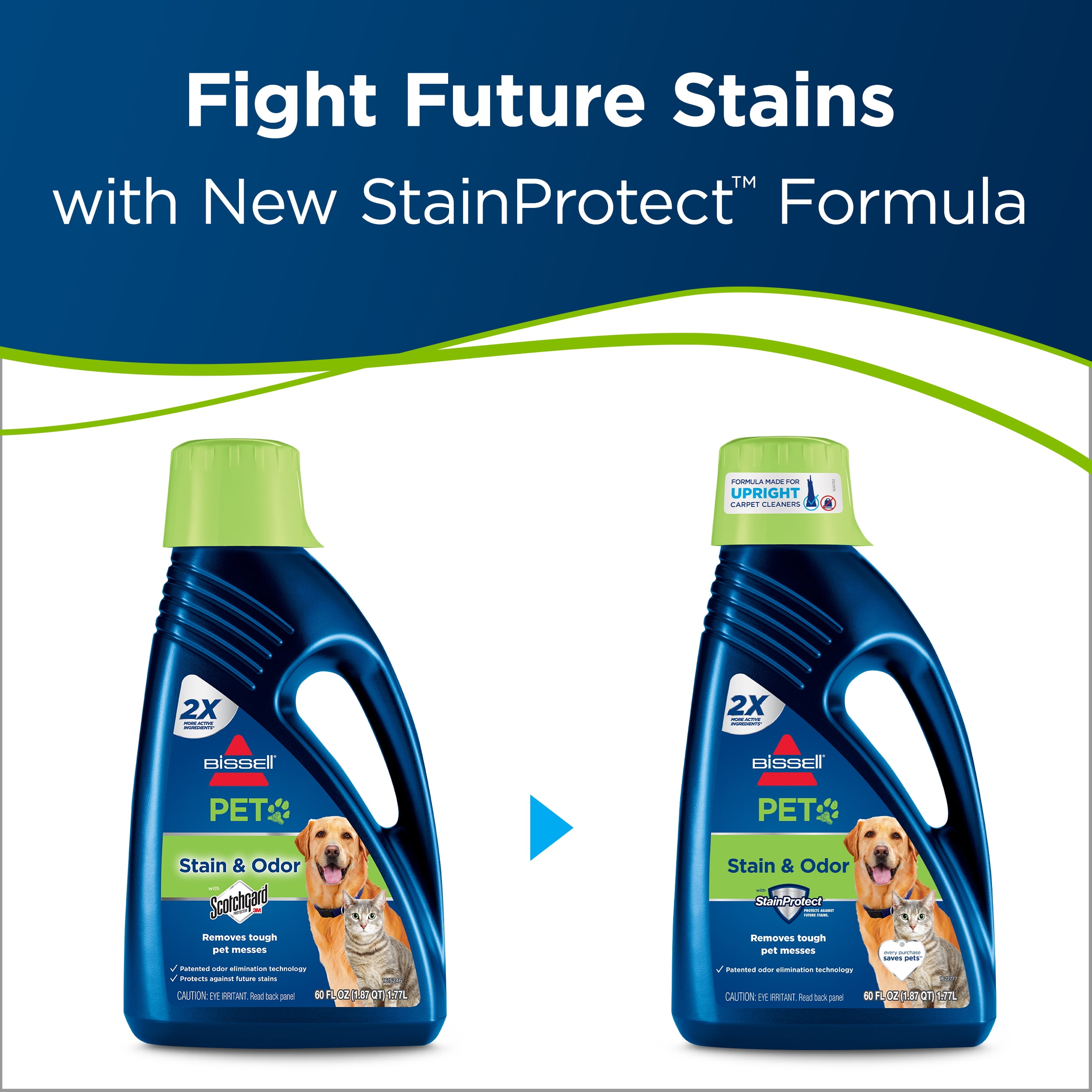 Use the Bissell Pet Stain and Odor Detergent, 60 fl oz, in order to get your carpets back to looking their best. This product is a must-have for someone that has pets running around their home. Animals can leave a mess everywhere they go, whether it is their odor or a wide variety of stains. The Bissell detergent is formulated to be able to help eliminate those pesky stains and odors. Carpets look fresh and stay cleaner longer when this formula is used. Not only will it be able to get rid of the stains that are currently visible but can also protect carpets from future stains. The pet stain and odor detergent has earth-friendly ingredients are ideal for the environment and also safe for your pets. It will make a useful addition to the rest of your home-cleaning supplies and products. The concentrated liquid formula comes in a 60-fl oz bottles. Put it in your upright deep cleaning machine, and let it do the hard work for you.Bissell Pet Stain and Odor Detergent, 60 fl oz: