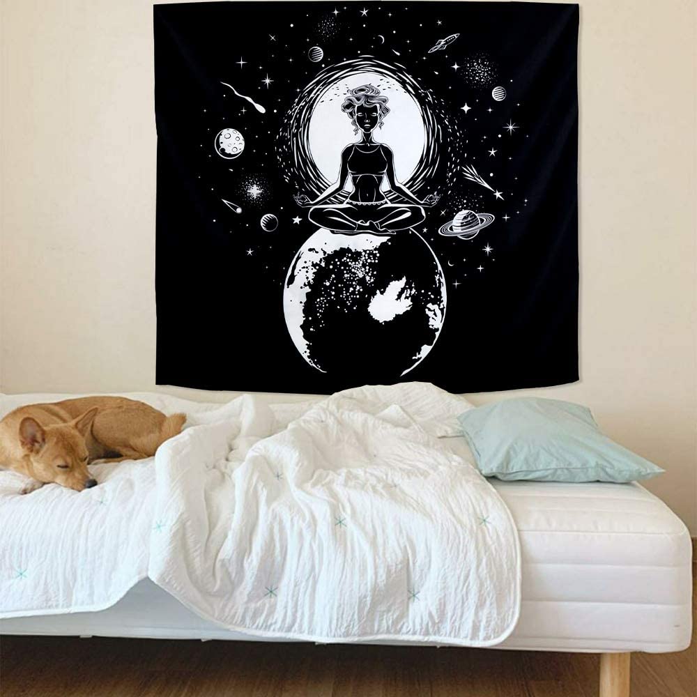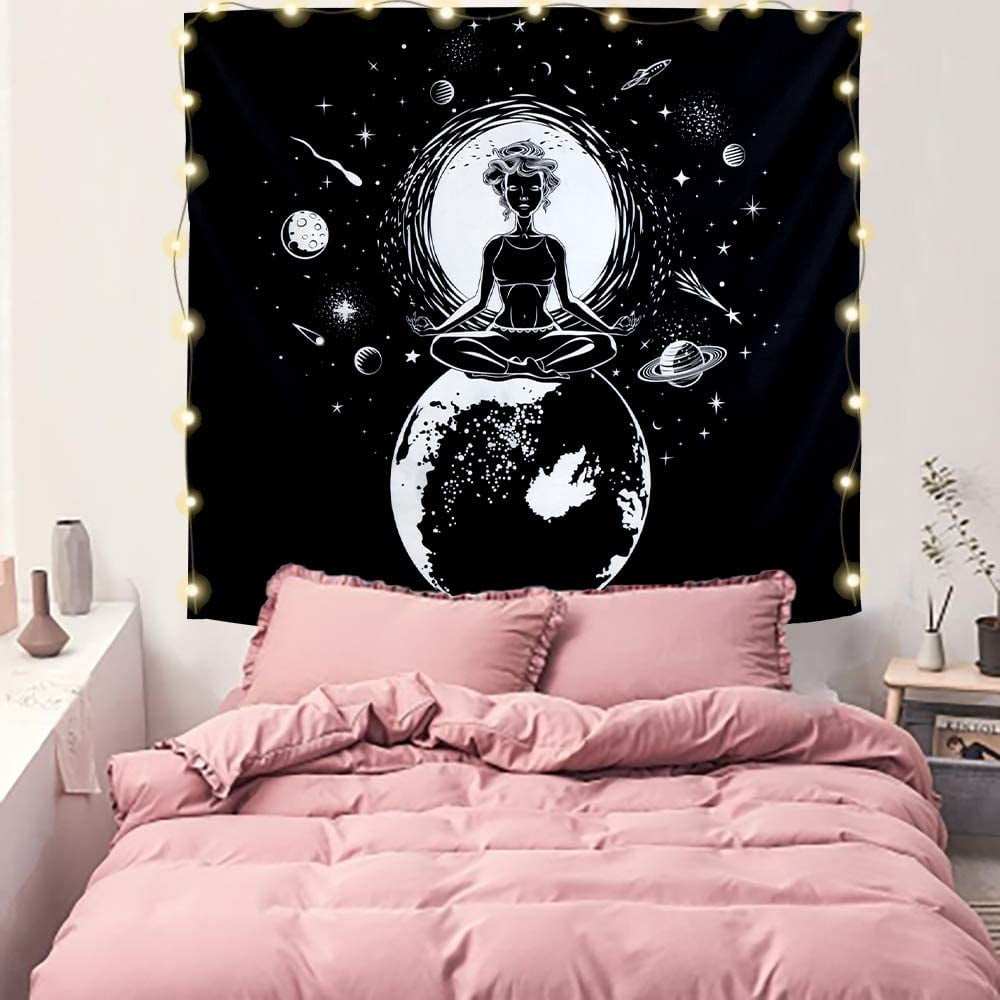 Black White Tapestry Wall Hanging for Bedroom Moon Aesthetic Mystic Chakra Meditation Planet Wall Tapestry Decor Decoration for Living Room Backdrop Dorm