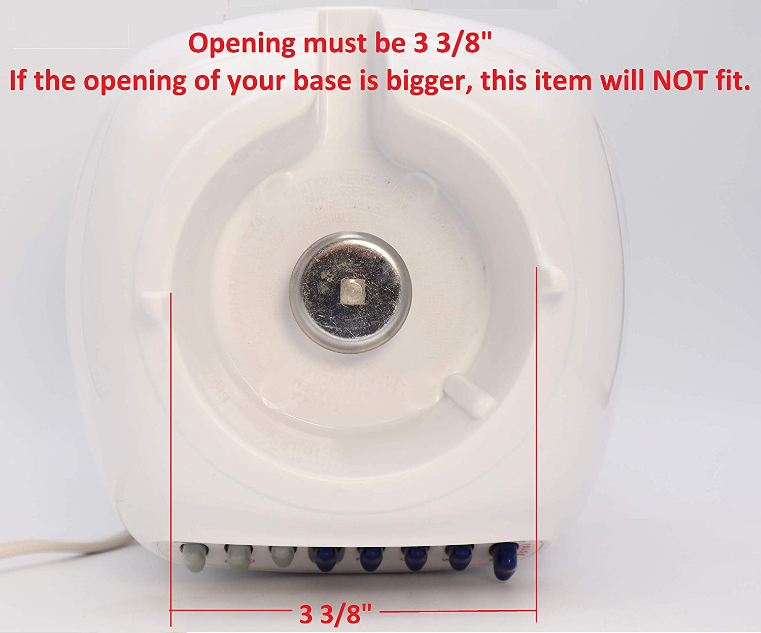- Compatible with Oster Blenders that the motor base have opening of 3 3/8". Please see the 3rd picture. If the opening of your base is bigger, this item will NOT fit. It fit base diameter is 2 5/8".