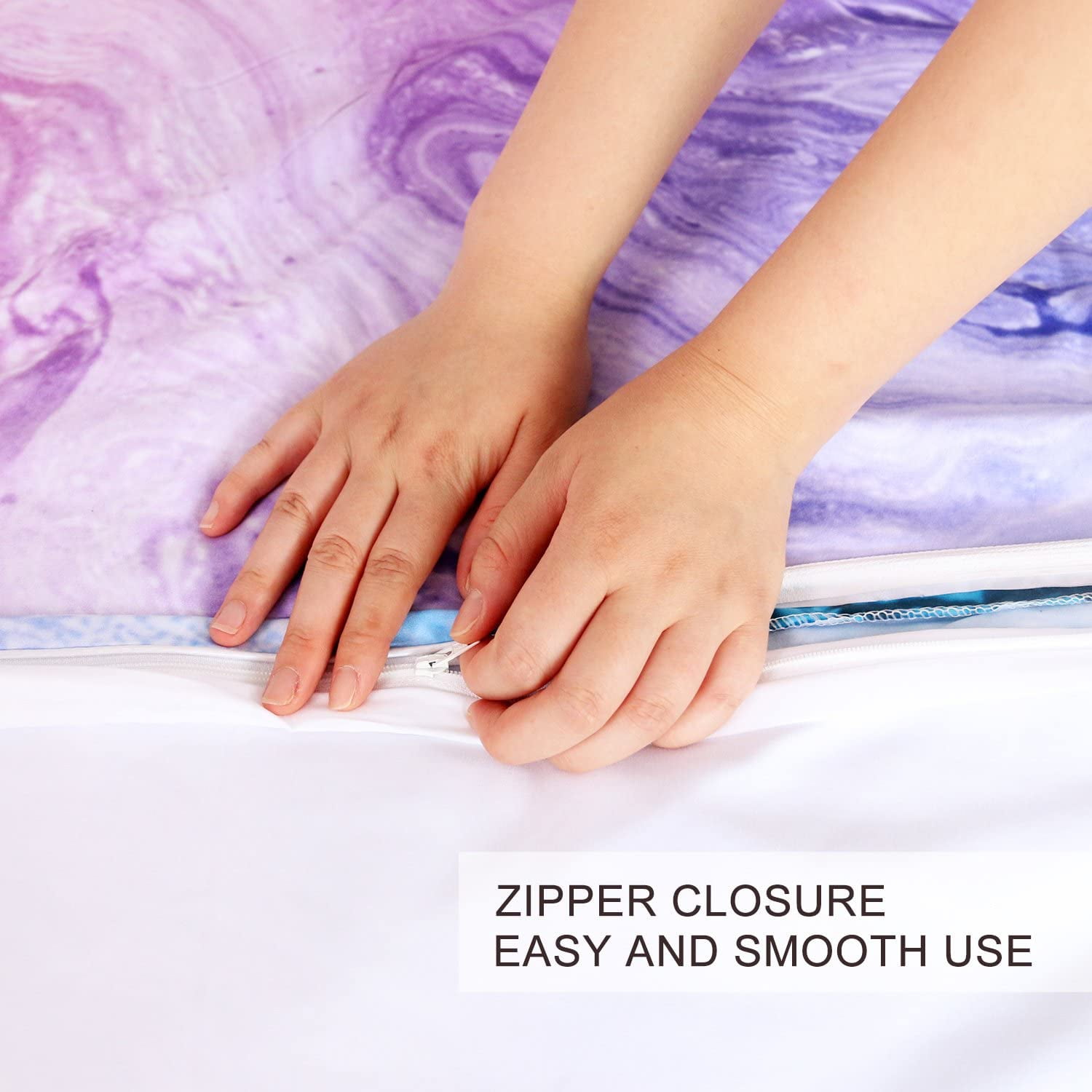 BREATHABLE SOFTNESS – Softness and warmth breathable & hypoallergenic, stronger and more durable than cotton, microfibers are processed to protect against any shrinkage after washing.COLORFUL MARBLE PATTERN – An abstract multicolored marble texture creates this eye-catching girly bedding set. Can’t get anymore awesome than that.PERFECT FIT – This 3 Piece Twin Duvet Cover Set Includes: One Duvet Cover 68" x 86", and Two Pillow Shams 20" x 26" each. NOTE: Set DOES NOT include any INSIDE FILLERS AND ACCESSORIES.CLEAN DESIGN – Duvet cover has nonslip corner ties and hidden zipper closure; shams are finished neat with envelope closures.WE’VE GOT YOU COVERED – "Customers first" will be our unchanging promise to consumers. If for any reason you decide that this duvet cover set is not for you, you are covered by our 90 day, no questions asked, money back guarantee.