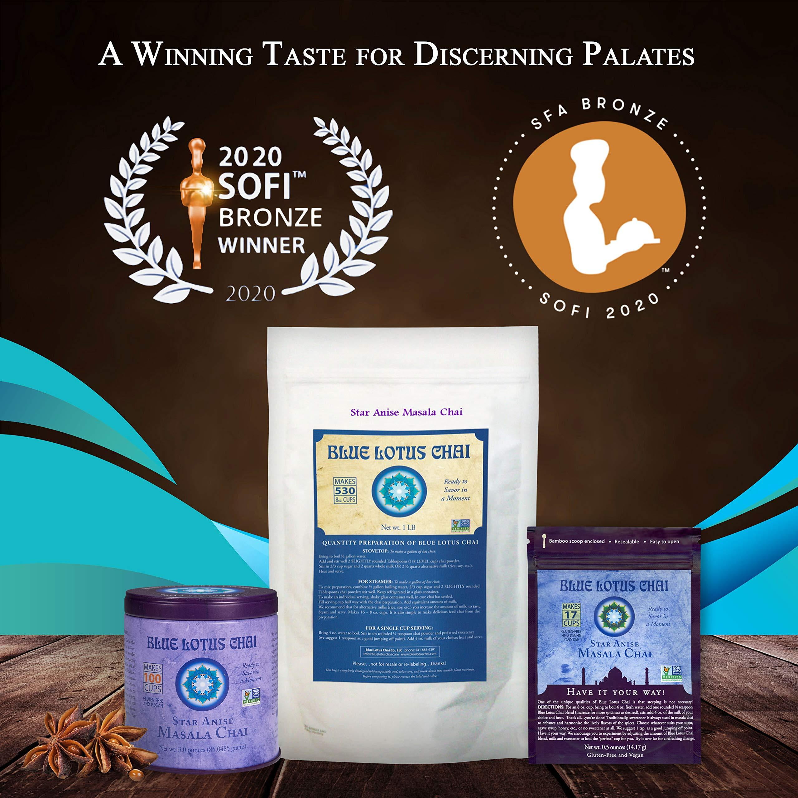 Winner of 2020 Bronze Sofi Award, Tea Category! – The delightful and authentic taste of Blue Lotus Chai will have you falling in love. Enjoy an authentic Indian tea without any added sweeteners, milk powders or other additives. Don’t settle for mediocre chai – have GREAT chai.