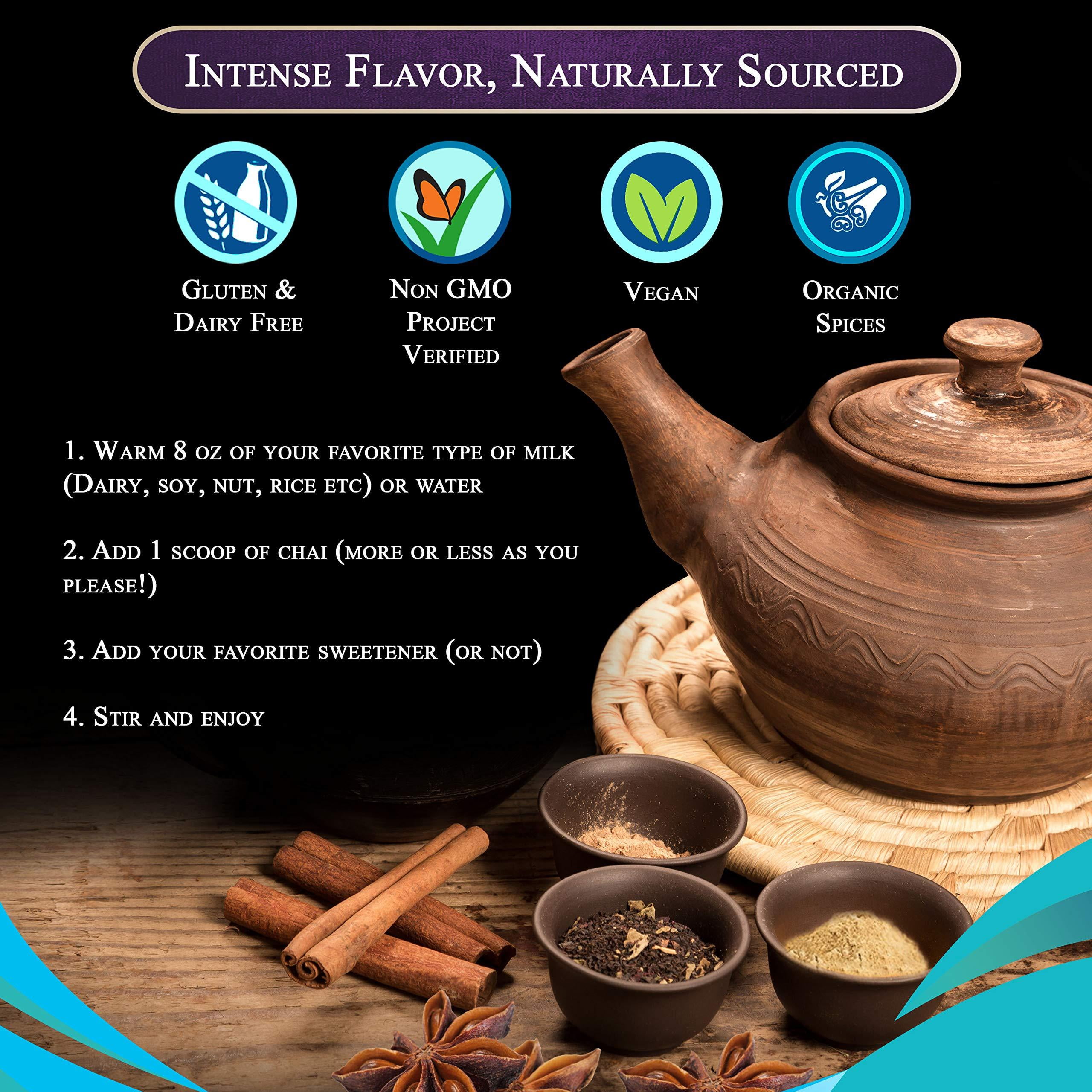 CLEAN, PURE CHAI MADE WITH ORGANIC SPICES AND NO ADDITIVES – It’s so authentic, you’ll notice we don’t call it "Chai Tea" or "Chai Tea Latte" – Chai, the Indian word for tea, only needs to be said once! Our chai is an aromatic mix of 100% certified organic powdered spices and the concentrate dissolves completely.