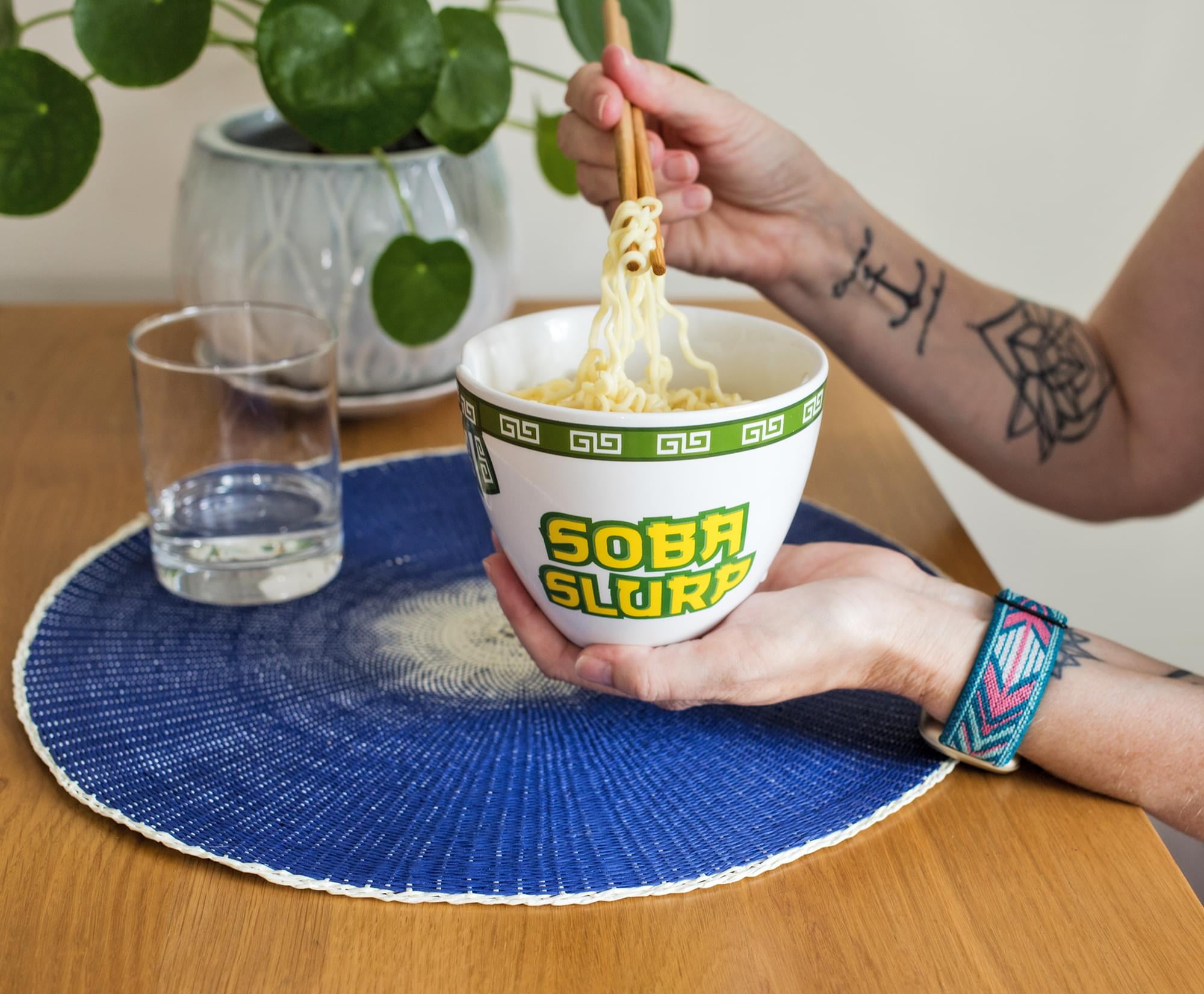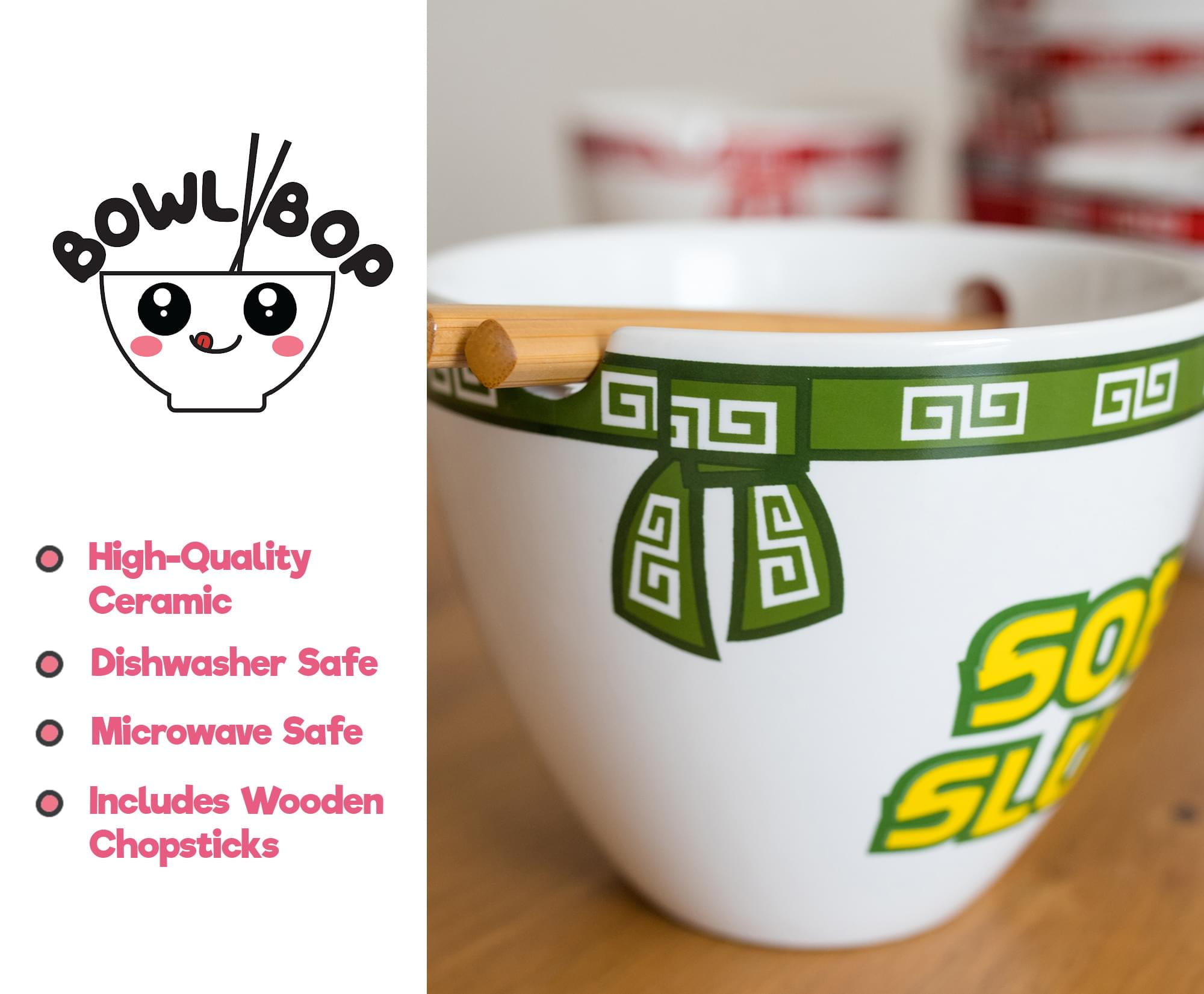 - Fun And Collectible: Bring some good eats to your tabletop with this exclusive Soba Slurp Ramen Dinnerware Set. You can chow down on all your slurpin’ faves with this charming ramen bowl and chopstick set.