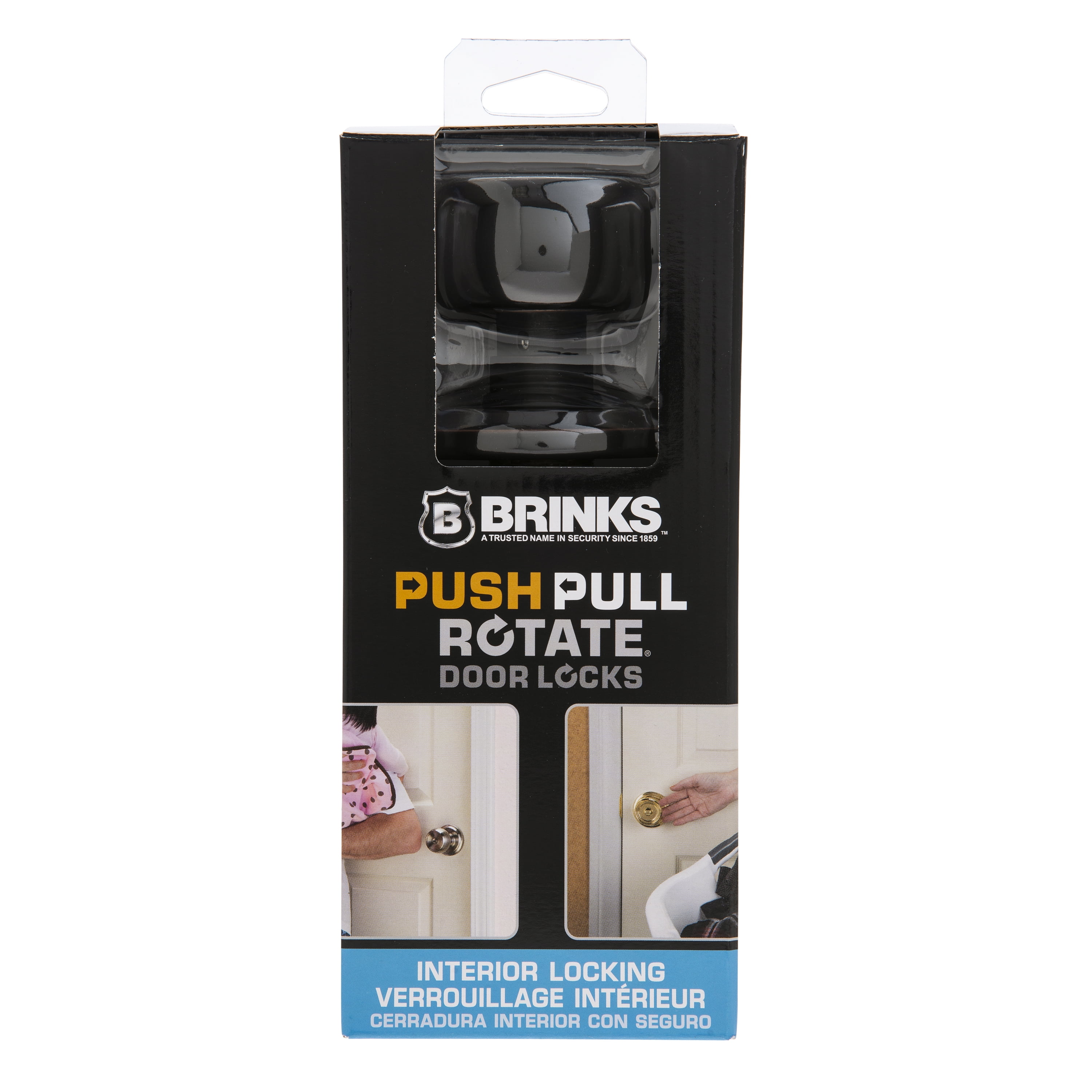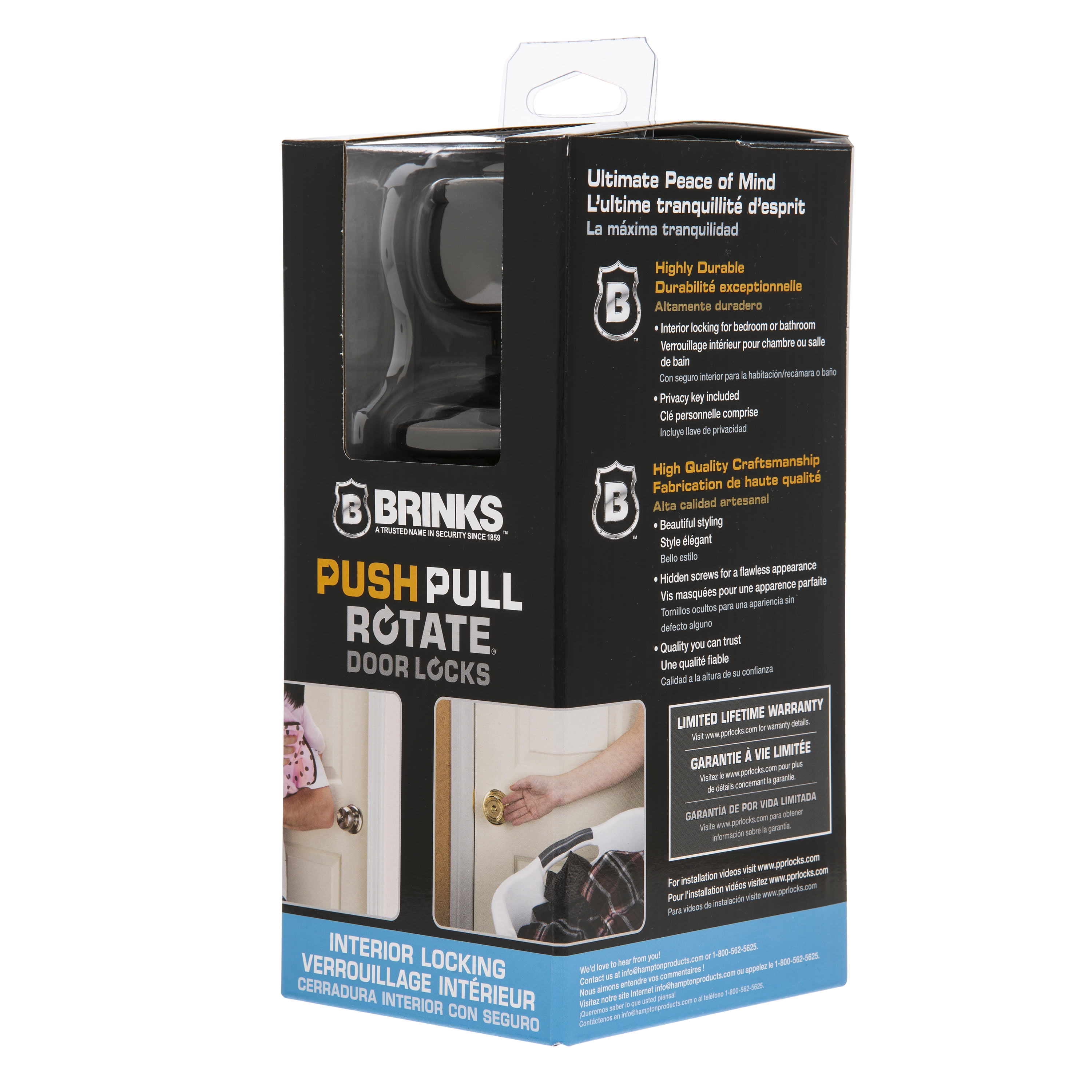 Push Pull Rotate™ the hands-full door lock from Brink’s. The only door lock that opens 3 ways. Push it, pull it, or rotate it. With an elbow, hip or finger you can open the door by simply pushing or pulling on the knob or lever. Despite being so easy to use, these locks are built to achieve the most rigorous residential security standards as you would expect from Brink’s. You can rest assured they will keep intruders out and your family and valuables safe. Push Pull Rotate door locks are built on a commercial grade chassis to withstand repeated use and abuse making them perfect for front and back doors and for all interior rooms like bathrooms, laundry rooms, and pantries. Installation is easy and they fit all standard doors. You only need a Phillips screwdriver and a few minutes to dramatically improve the function and appearance of your home. Made with superior craftsmanship, Push Pull Rotate door locks have hidden screws for a more decorative appearance, 75mm diameter roses to hide the blemish from old hardware and removable interior knobs or levers for scratch-free installation.