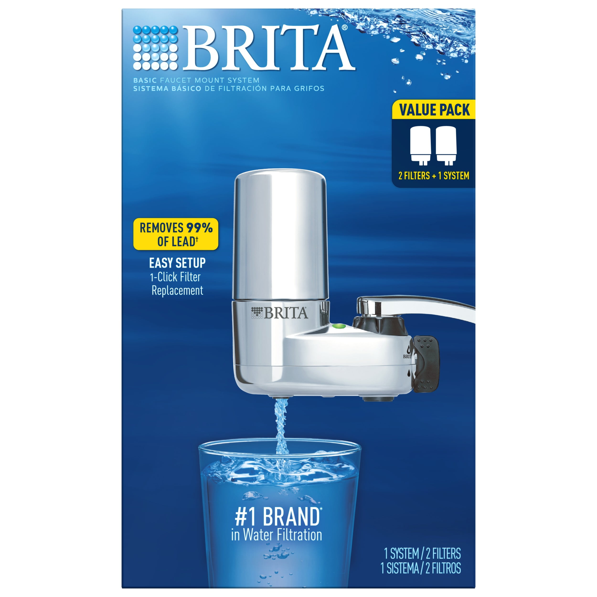 Brita Chrome On Tap Faucet Water Filtration System filters out odors and impurities for healthier, great -tasting water in a sleek chrome finish. Brita is the worlds #1 brand of water filtration. This basic faucet mount removes 99% of lead and reduces chlorine (taste and odor) and asbestos contaminants* commonly found in tap water It features an extra layer to trap sediments and smaller contaminates. One Brita water filter can provide up to 100 gallons of filtered tap water, replacing over 750 standard 16.9 oz. plastic water bottles, which cuts down on waste and saves money. This certified Brita water filter system attaches directly to standard faucets in five easy steps and includes a built-in filter indicator to signal the need for replacement after approximately 100 gallons or 4 months, whichever comes first. This model does not fit pull-out or spray style faucets. Get better taste on tap with the Brita Chrome On Tap Faucet Water Filter System.