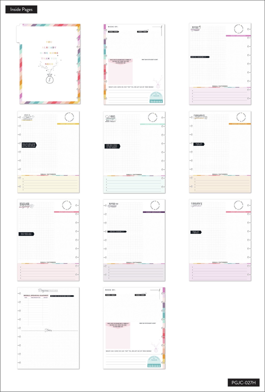 - The different prompts will help you manage mindful thinking like dictating wants vs needs, how to cut expenses, and no spend challenges