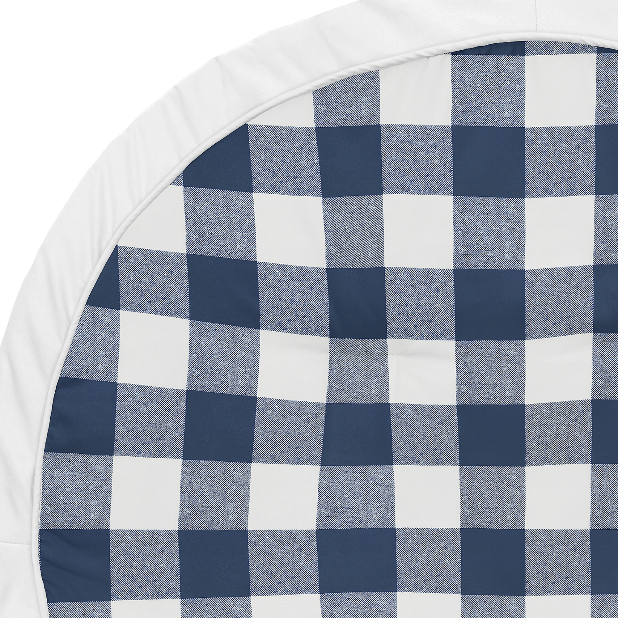 - Playmat is designed using a navy blue and white buffalo plaid check and finished with white piping and border – Flannel and Brushed Microfiber