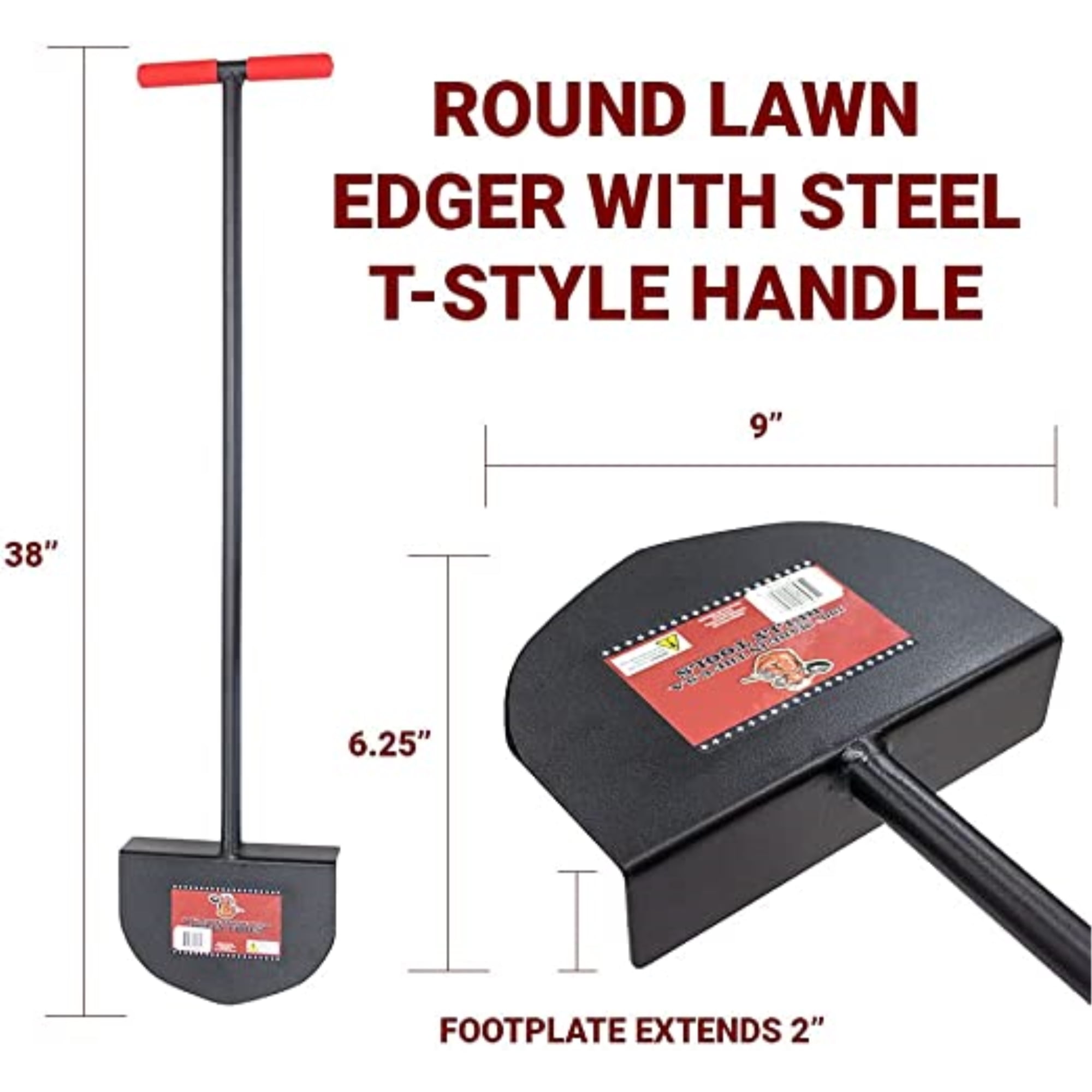 The Bully Tools 92251 Round Lawn Edger features a steel T-style Handle. Head: 9-inches by 7-inches. Handle measures 33-inches. Tool measures 38.375-inches. The Bully Tools 92251 Round Lawn Edger comes with a limited lifetime warranty that protects against defects in material and workmanship. Founded in 1994, Bully Tools has been proudly producing 100-percent made products assembled by American workers. Bully Tools manufactures gardening and farm tools, shingle removers, floor scrapers, forestry and other specialty tools. With an unprecedented history of quality, Bully Tools is committed to applying the same reliability to our business practices. Bully Tools continues to grow and adapt to meet the ever changing needs of the economy and their consumers.