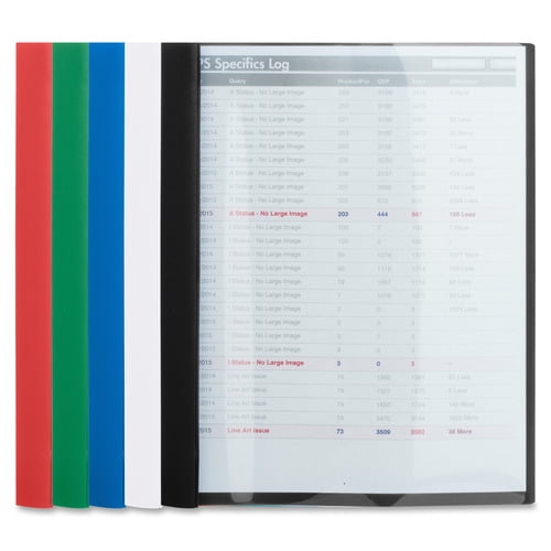 Report covers feature a clear cover for easy customization for your presentations, durable back cover and fasteners that hold a stack of papers up to 1/2" thick. Clear front cover is nonstick so it won’t lift print from your reports. The back cover is made of heavy-duty coated paper that resists water. Long-lasting report cover offers a textured outside and smooth inside. Interior, three double-prong fasteners hold up to 100 sheets of letter-size paper.