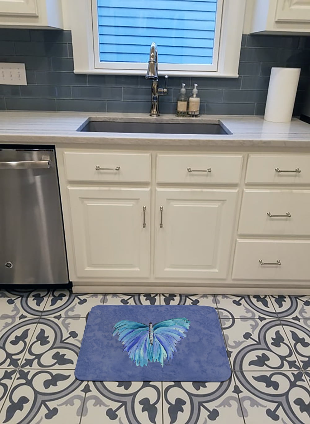 Butterfly on Slate Blue Machine Washable Memory Foam Mat