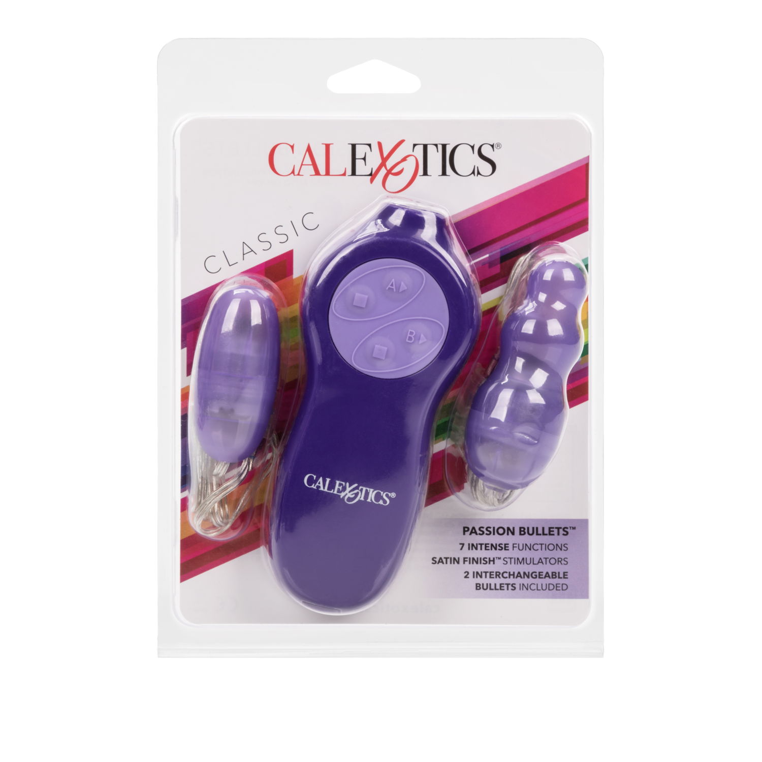 CalExotics Passion 7-Function Satin Finish Interchangeable Bullet & Multi Probe Vibrator – Purple