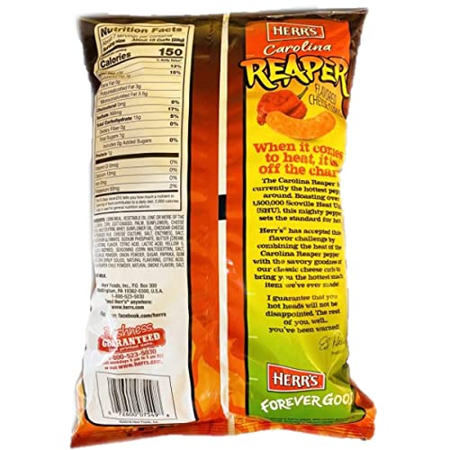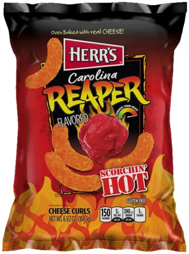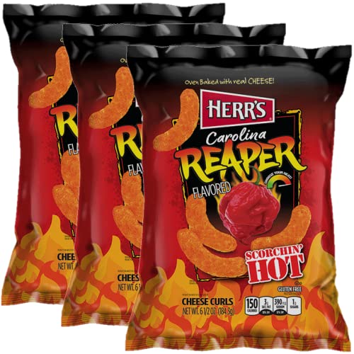 - Three 6 Ounce bags of Herr’s Carolina Reaper Cheese Curls