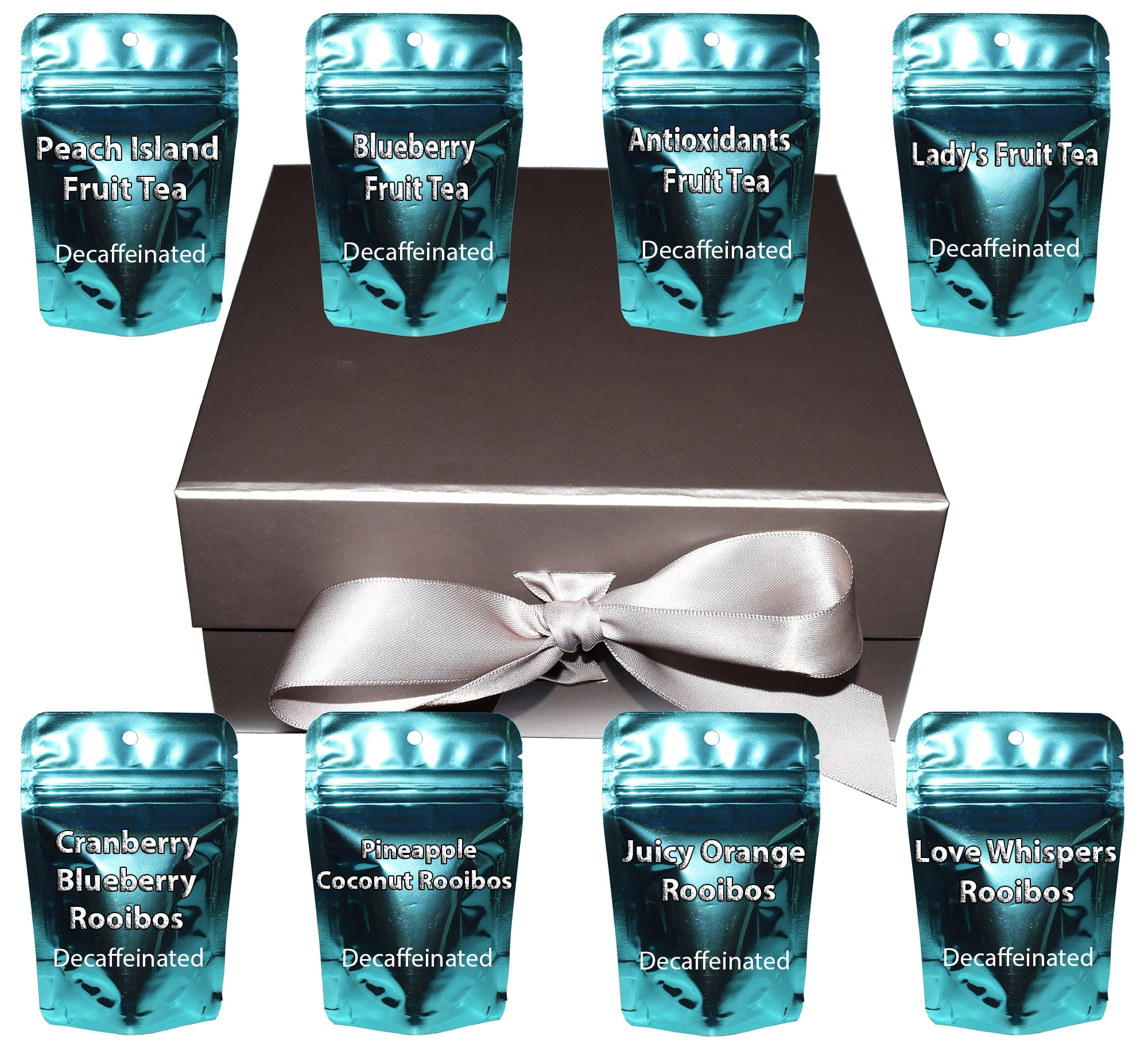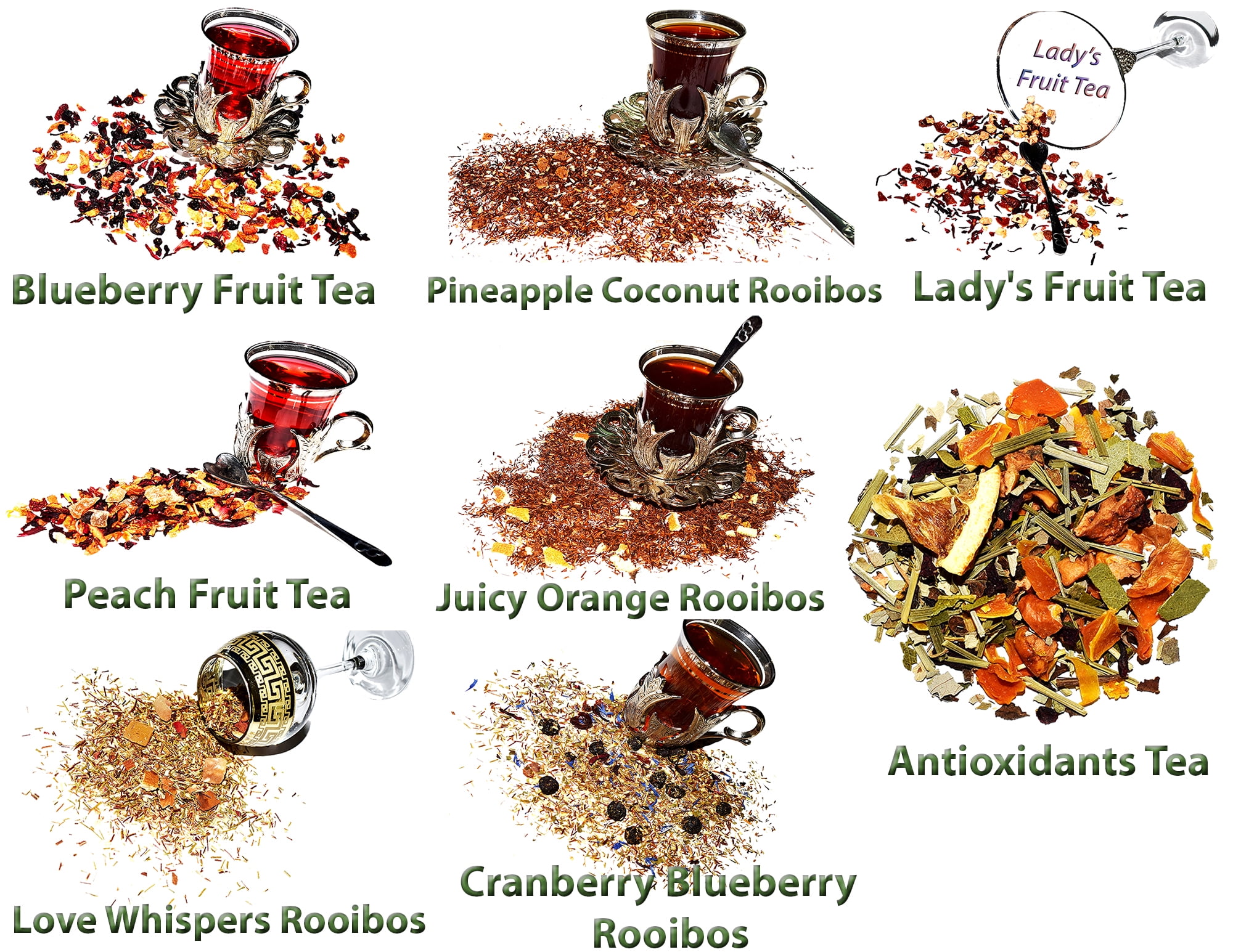 Chinese Tea Culture 8 of Fruit Tea and Rooibos Tea Samplers, Exquisite Gift Box, Decaffeinated, Peach, Blueberry, Cranberry, Juicy Orange, Pineapple, Coconut, Loose Leaf Tea