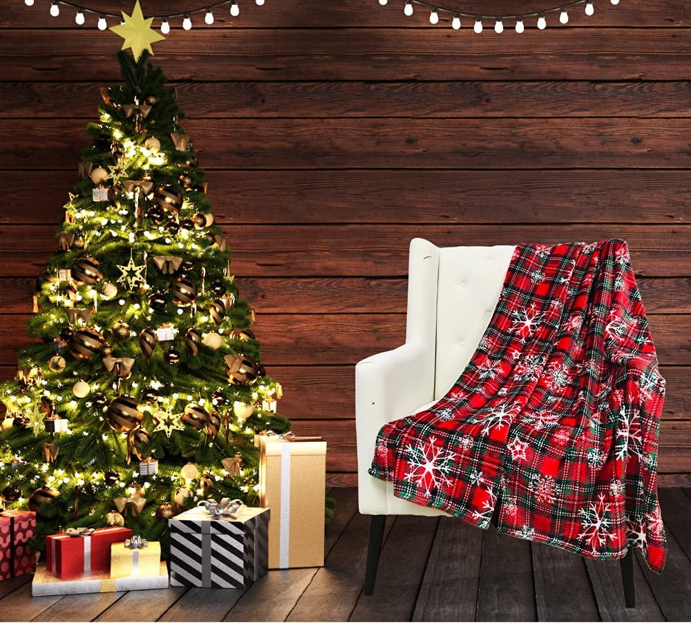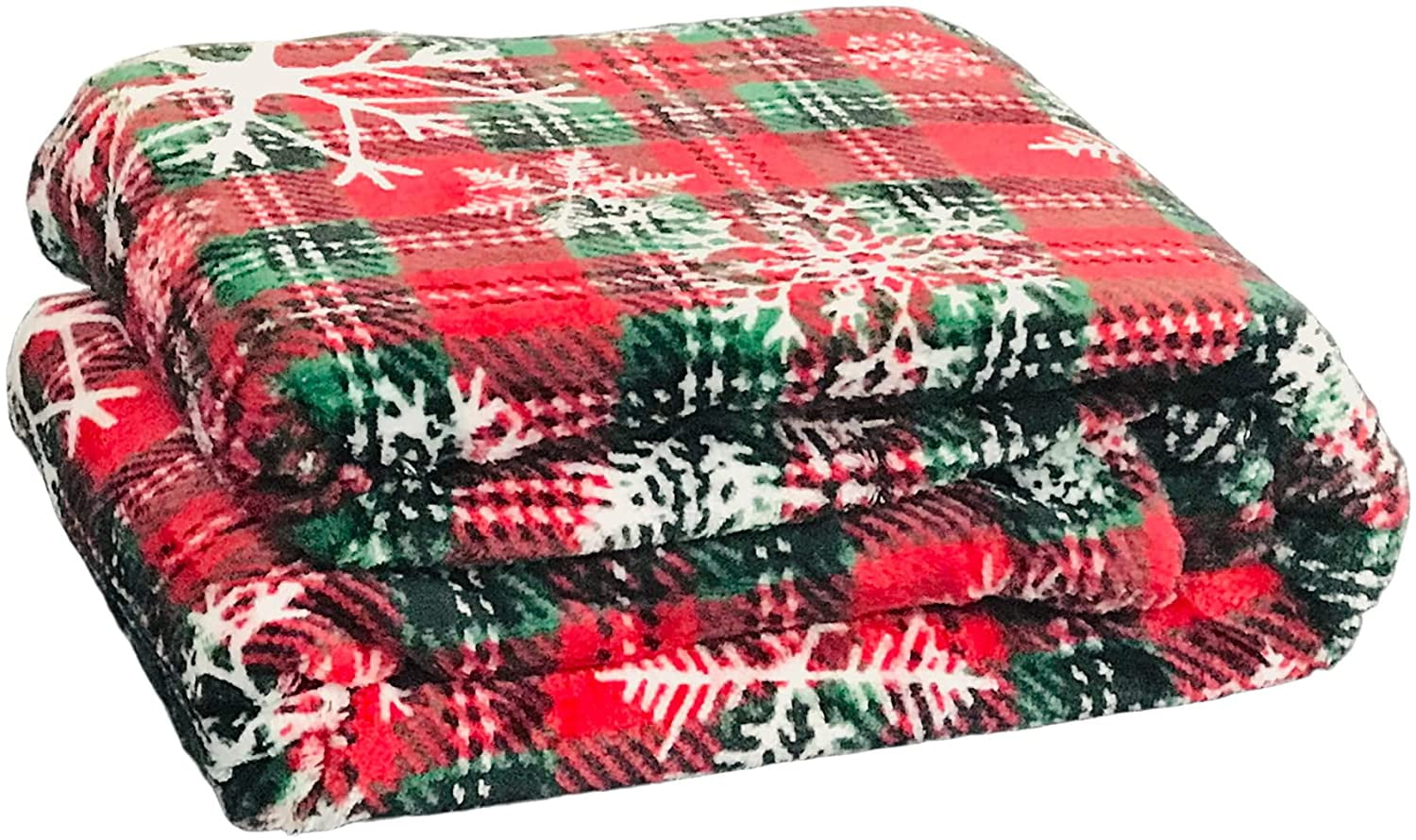 Christmas Holiday Plaid Throw Blanket with Snowflakes: Soft Cozy Accent for Sofa Couch Chair Bed or Dorm, Red Green White (Snowflake Plaid)