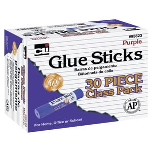Quick-drying glue stick goes on purple and dries clear to let you see exactly where you’re applying the glue. Easy-to-use, twist-up applicator ensures clean and accurate laydown to prevent excess glue from building up. Acid-free, nontoxic formula is odorless to prevent irritating those who are sensitive to strong scents. Washable adhesive cleans easily from most places for worry-free use by young learners. Glue stick is perfect for paper, cardboard, photos, fabric and more.1Pc CLI 30-piece Classpack Glue Sticks – 0.28 oz – 30 / Box – Purple