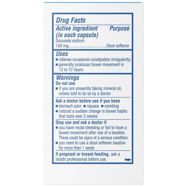 - Formulated with 100mg docusate sodium, helping to soften stool and make passing it more comfortable