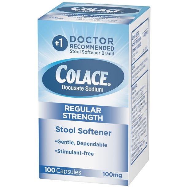 Colace Regular Strength Stool Softener Capsules gently soften hard and painful stool. Colace Regular Strength is a safe, stimulant-free stool softener option for a #2 that’s easy to do. Colace is the #1 Doctor recommended stool softener brand and has been trusted by doctors and patients for nearly 60 years to provide relief from occasional constipation. Colace Regular Strength relieves many symptoms of occasional constipation, including straining during bowel movements, hard dry stools and infrequent or irregular bowel movements. Colace Regular Strength provides relief from occasional constipation during pregnancy and for new moms. If pregnant or breast feeding please consult with a doctor before use. Colace Regular Strength is not a stimulant laxative. The active ingredient, docusate sodium, allows water and fats to get into the stool, helping to soften and make passing it more comfortable.