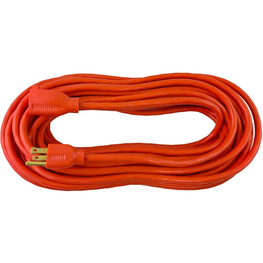 This 50′ indoor/outdoor extension cord features a grounded single-outlet with a three-prong plug. 16-gauge cord manages up to 13 amps, 125 volts and 1,625 watts. UL listed.