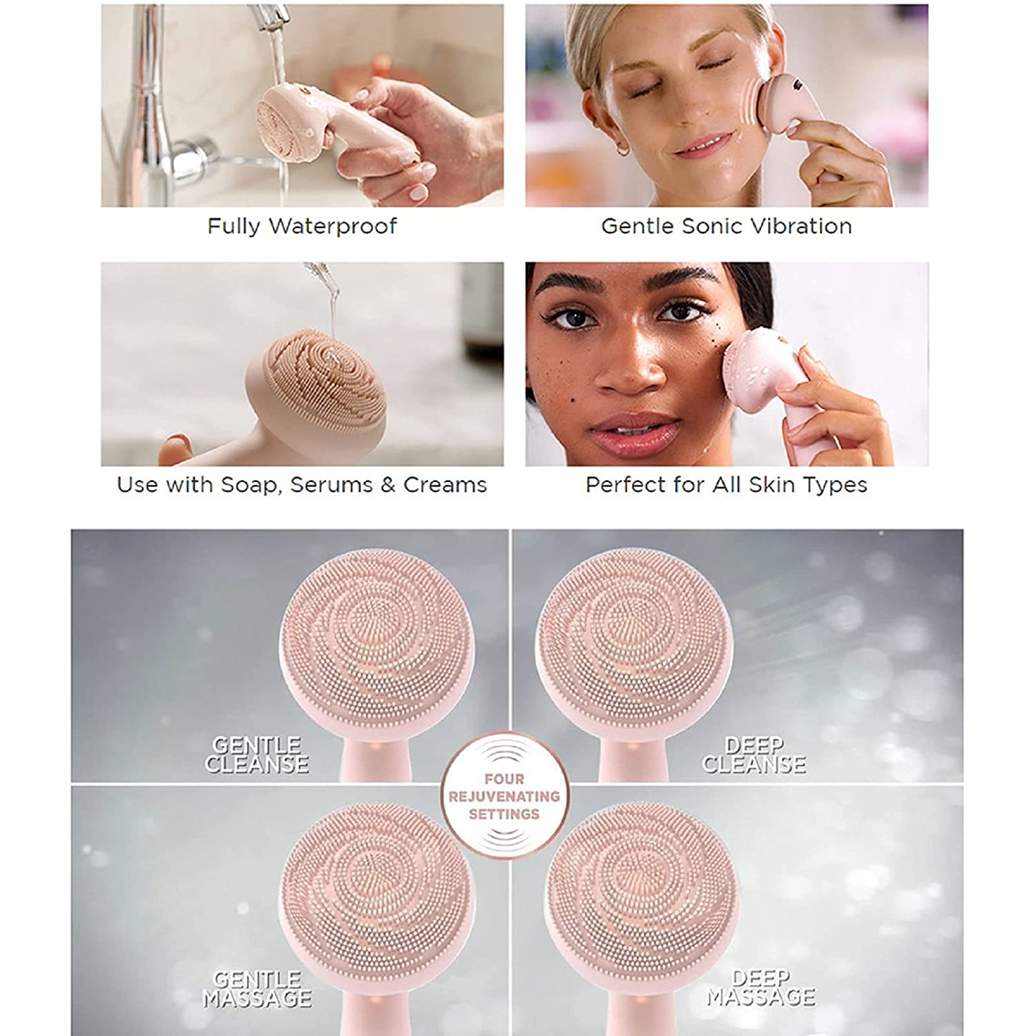 Cosprof Silicone Facial Cleansing Brush, Electric Silicone Face Scrubber Skin Beauty Device USB Rechargeable for Makeup Remover