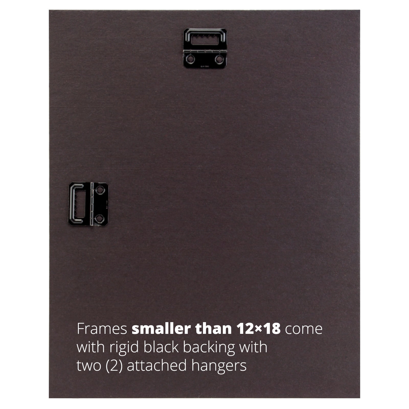 - Frame includes: glass, rigid black backing and pre-attached stamped hanging hardware