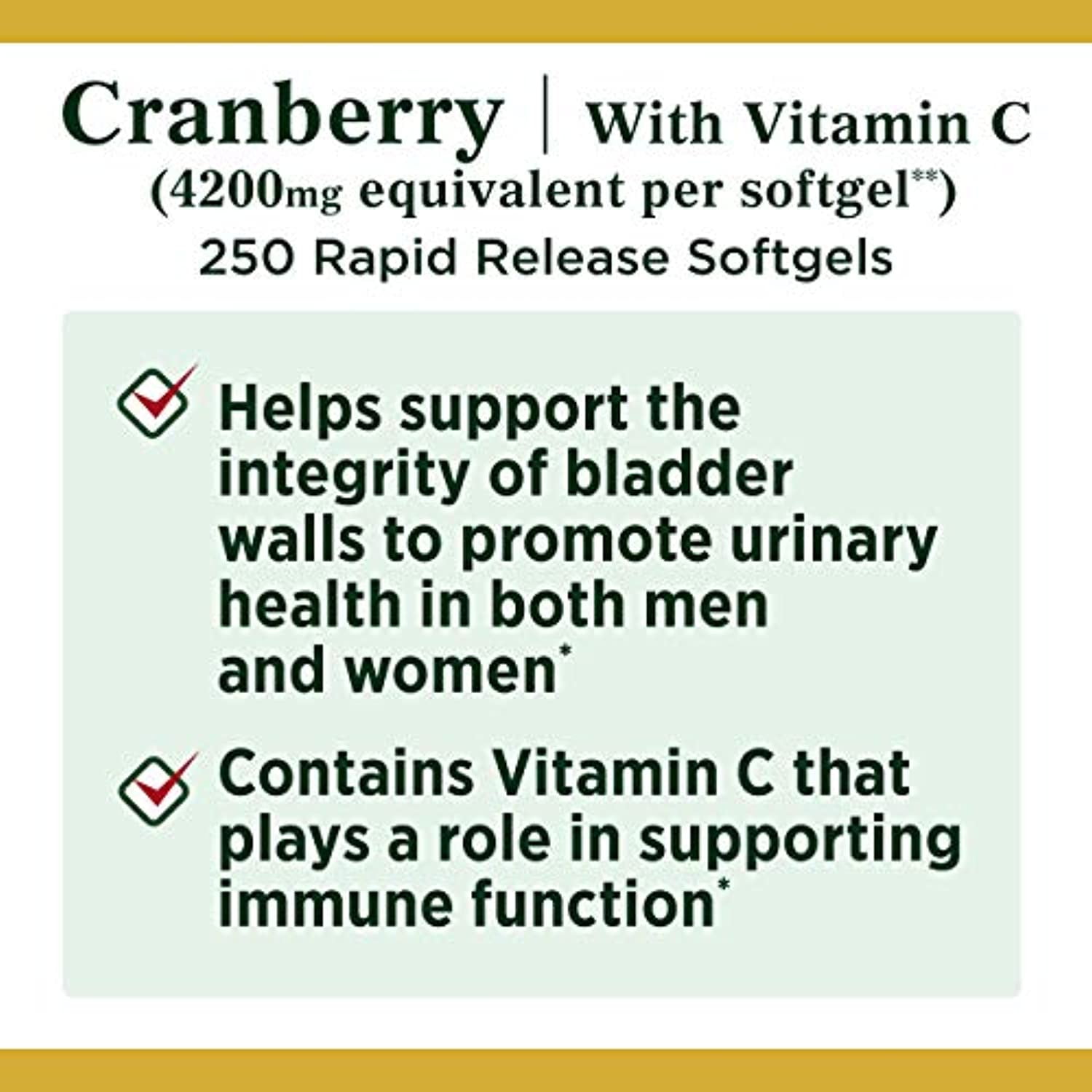 Cranberry Pills w/ Vitamin C by Natures Bounty, Supports Urinary & Immune Health, 4200mg Cranberry Supplement, 250 Softgels