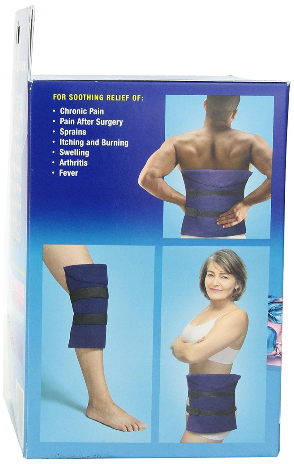 For soothing relief of: chronic pain, pain after surgery, sprains, itching and burning, swelling, arthritis, fever. Patented points of cold technology for max continuous cold power, max relief against pain, max comfort. Maintains cold up to 8 hours for maximum relief. Non-toxic and latex free. Flexible when frozen. 12 inch x 12 inch (30 cm x 30 cm). Includes comfort wrap.