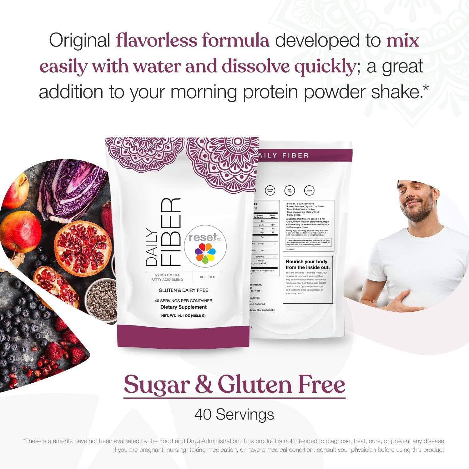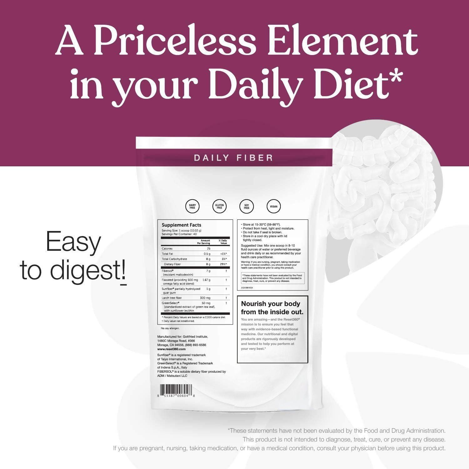 Easy-to-use fiber formula to support your gut health, regular bowel movements, and balanced gastrointestinal flora. Reset360 Daily Fiber makes it convenient to add high-quality fiber into your diet, which can help maintain healthy blood sugar and cholesterol levels, cravings, and weight management.*