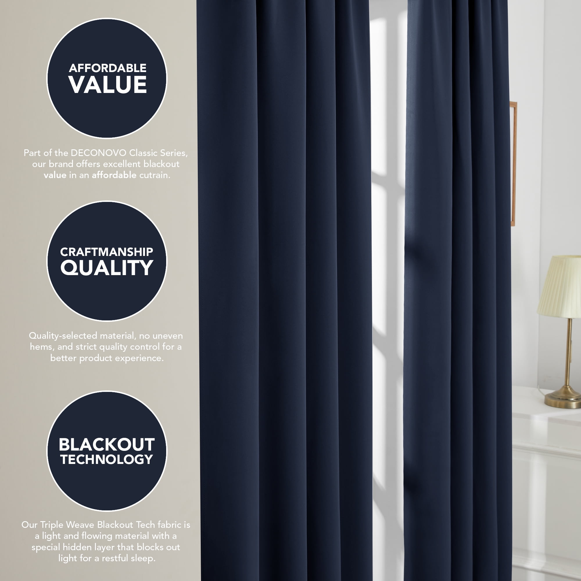 Deconovo Blackout Curtains allow you to decorate your window with elegant surface. Crafted with our proprietary triple weave fabric technology which consist of blending a high quality black yarn into two layers of fabric that allow you to block outdoor lights for a comfortable indoor and reduce the noise from the street and neighbors. They are also a perfect option for who want to block daylight, take a nap,or keep sun galre away from your TV screen.