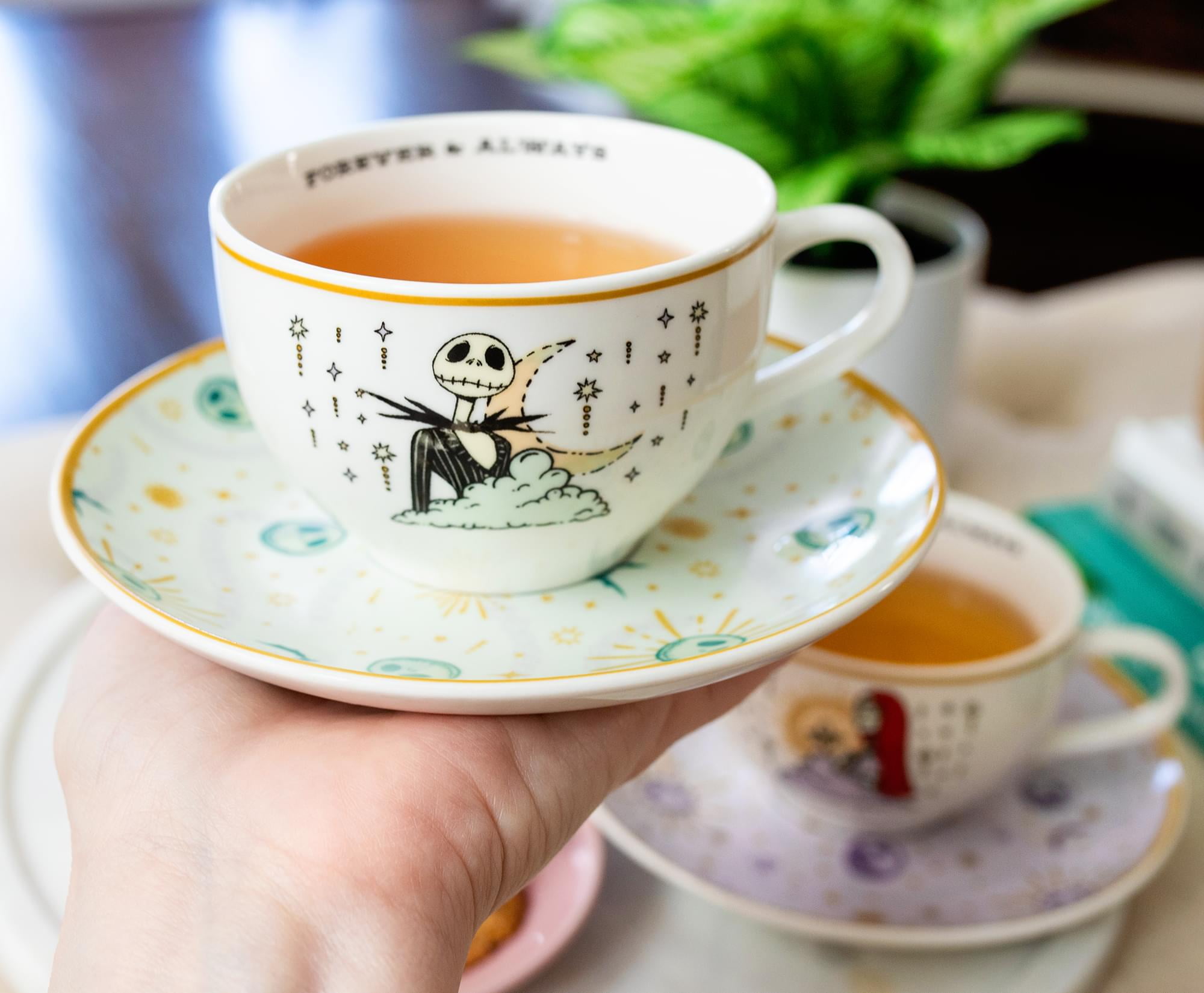 - SPOOKTACULAR TEA TIME: Entertain your special someone with this exclusive teacup and saucer set from Halloween Town. Love is truly eternal in the fantastical world of Tim Burton’s The Nightmare Before Christmas.