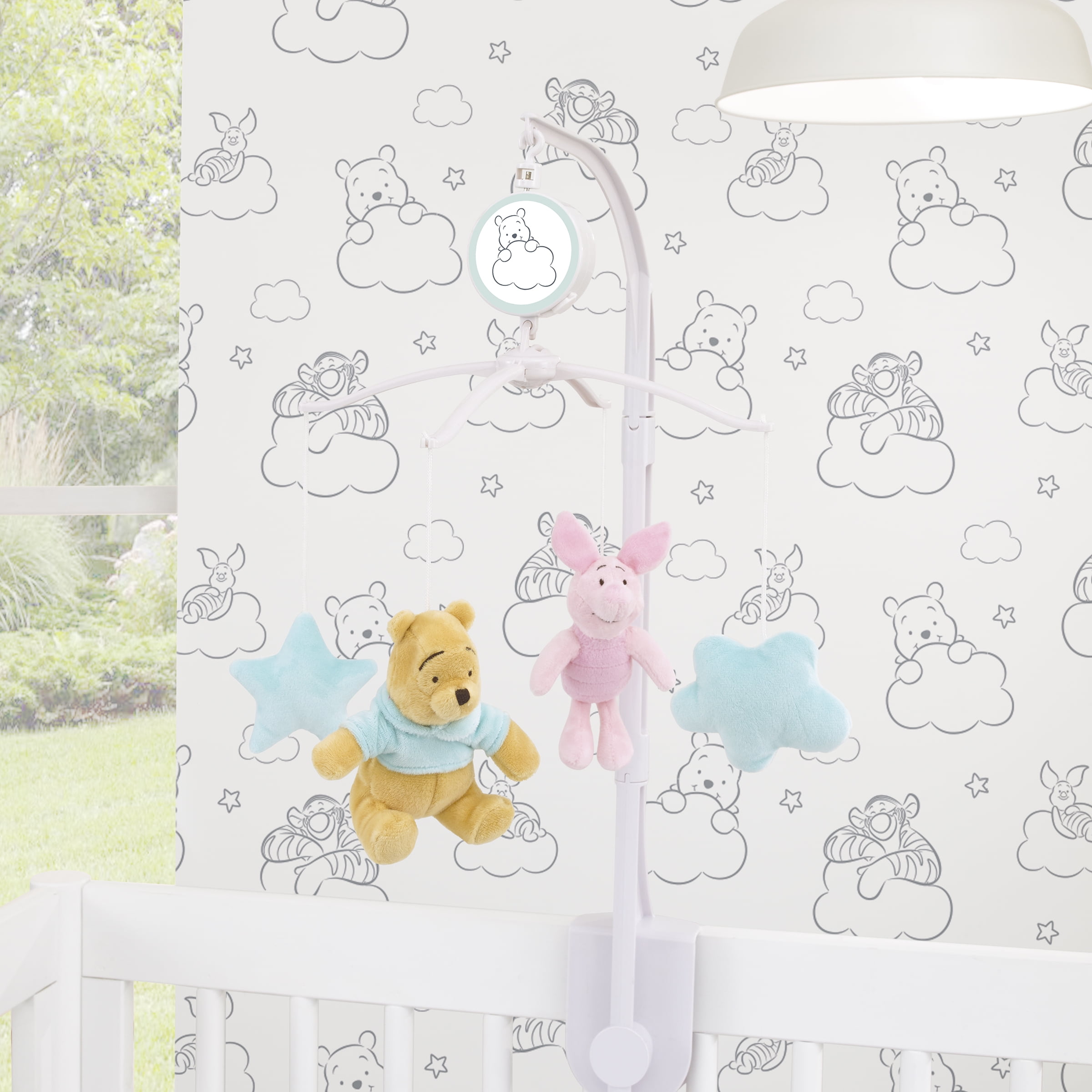 - Features a plush Winnie the Pooh and Piglet with a plush aqua cloud and star