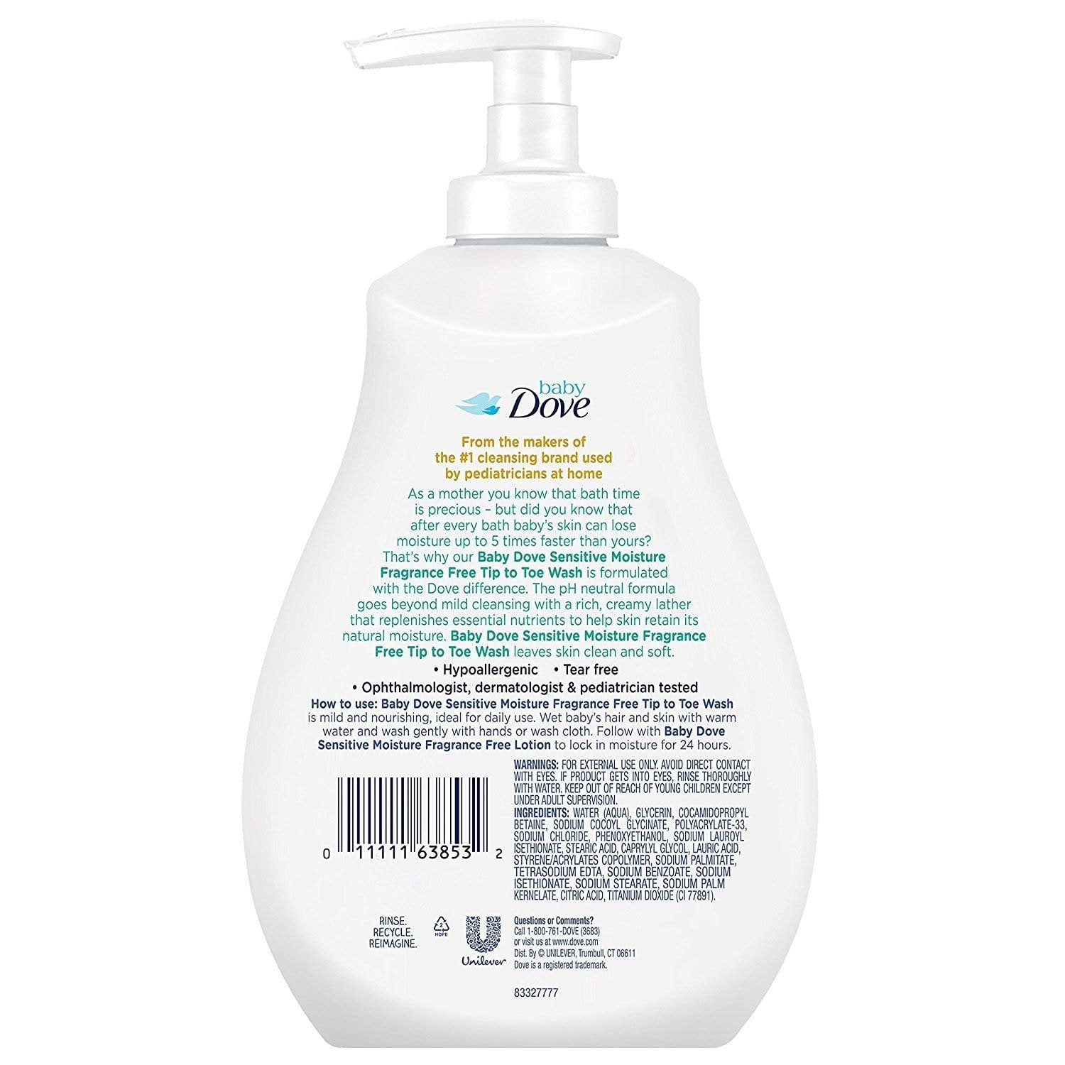 A babys skin is very delicate as it develops in the first few months and throughout the first year. In fact, its so delicate that its actually 30% thinner than ours, making it more vulnerable. So if your baby has sensitive skin, at bathtime you would want to use the best baby wash, one that gently cares for their sensitive skin. After all, your babys skin barrier is also delicate and much weaker than ours it loses moisture up to 5 times faster than ours. Thats why we created a range of sensitive skin baby products, including our Baby Dove Sensitive Moisture Tip to Toe Wash. With a pH-neutral formula, it helps to replenish the essential moisture and nutrients that your babys skin loses during bathing. Baby Dove Sensitive Moisture Tip to Toe Wash for sensitive skin keeps babys skin looking healthy and moisturized, so you can give their delicate skin the care it needs to keep healthy and hydrated. Only Baby Dove adds back what other mild baby cleansers remove. Ophthalmologist, dermatologist and pediatrician-tested, with Baby Dove you know youre looking after your babys delicate skin. Hypoallergenic and fragrance-free, the creamy lather of this baby wash for sensitive skin gently cleanses skin while helping it to retain its natural moisture. For skin thats soft and clean, a tear-free bath awaits.