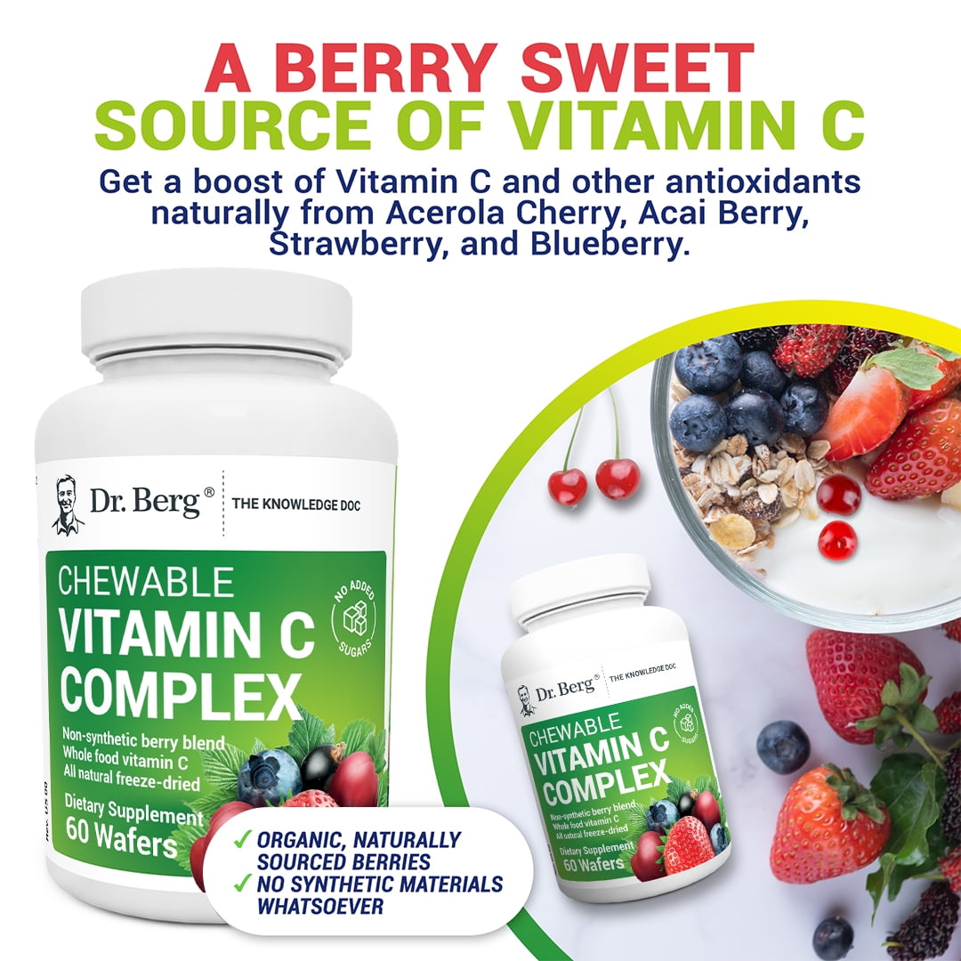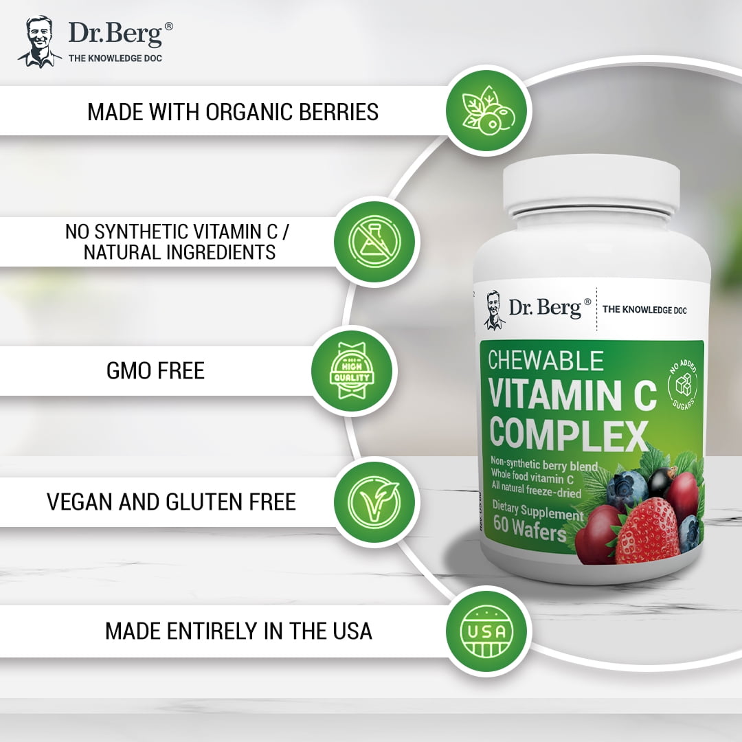 - DR BERG’S CHEWABLE VITAMIN C COMPLEX Delicious, chewable, organic, whole-food vitamin C that supports your health!