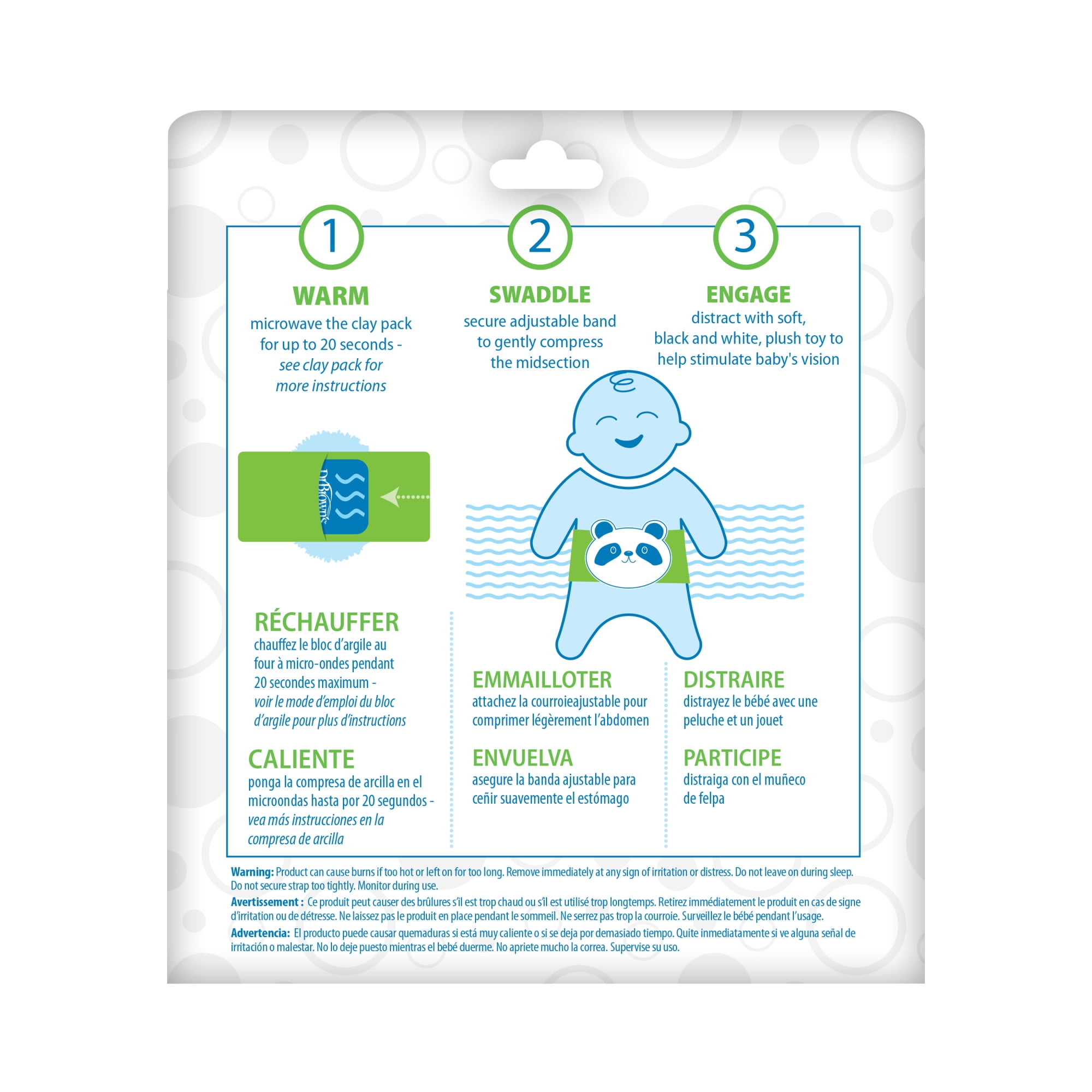 Searching for baby colic remedies? We’ve got you covered. Dr. Brown’s™ Infant Gripebelt™ baby belly band safely soothes baby’s upset belly while providing natural gas and colic relief. The doctor-designed adjustable heated tummy wrap provides warmth and a gentle compress to help relieve pain associated with colic, reflux and gas. The baby heating pad uses extra-soft fabric to comfort your gassy baby, while the soft, snuggly Panda keeps baby engaged. The Gripebelt baby belly band provides baby gas relief and is easy to use – simply warm the natural clay pack in the microwave, secure the adjustable baby belt to gently compress baby’s belly, and engage baby. The clay pack can also be frozen to treat aches and pains. Handwash only, wipe clean and air dry. 0m+. Warning: Product can cause burns if too hot or left on for too long. Remove immediately at any sign of irritation or distress. Do not leave on during sleep. Do not secure strap too tightly. Monitor during use.