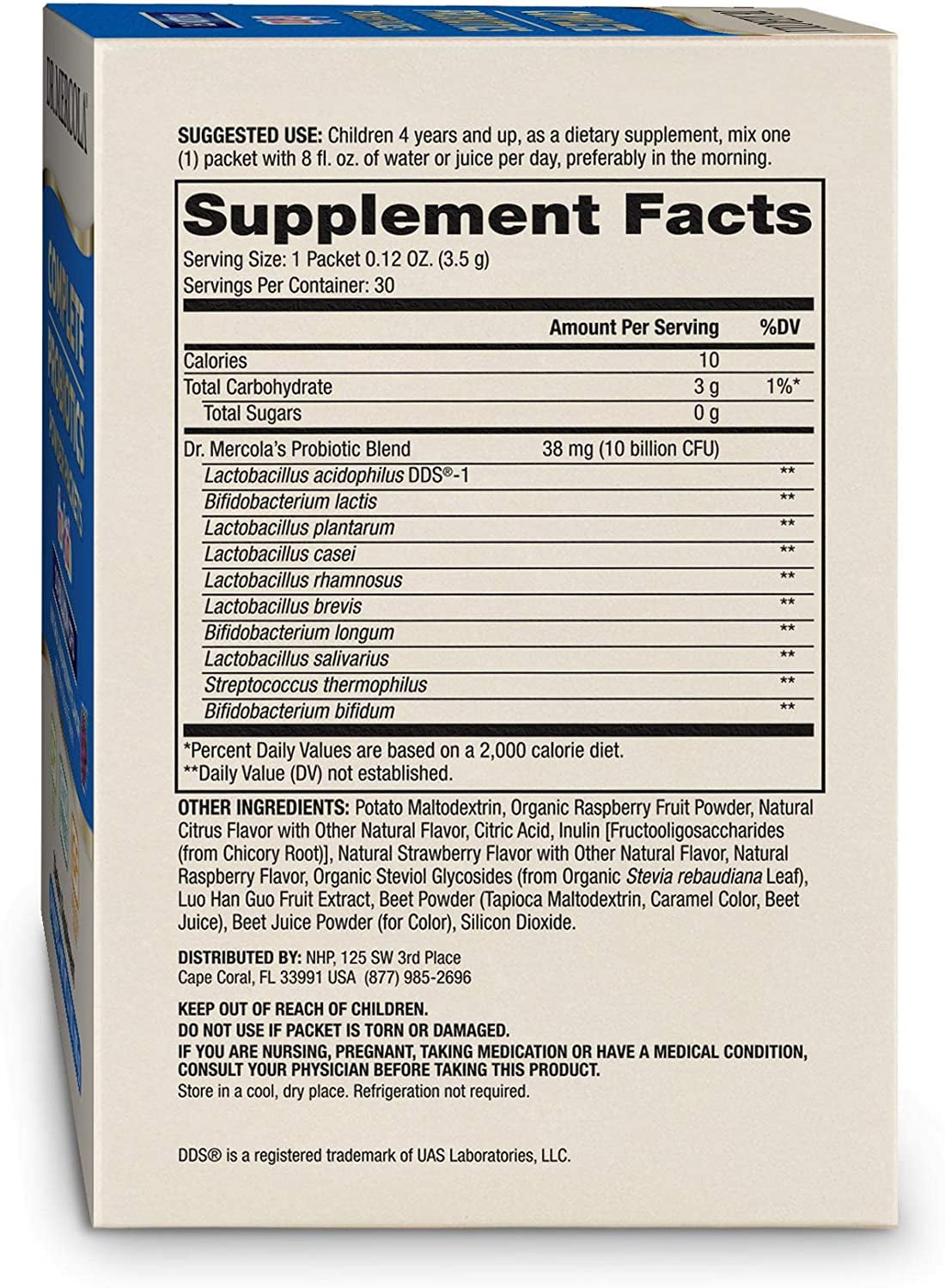 Dr. Mercola Complete Probiotics Powder Packets for Kids (10 Billion CFU) – Natural Raspberry Flavor, 30 Packet
