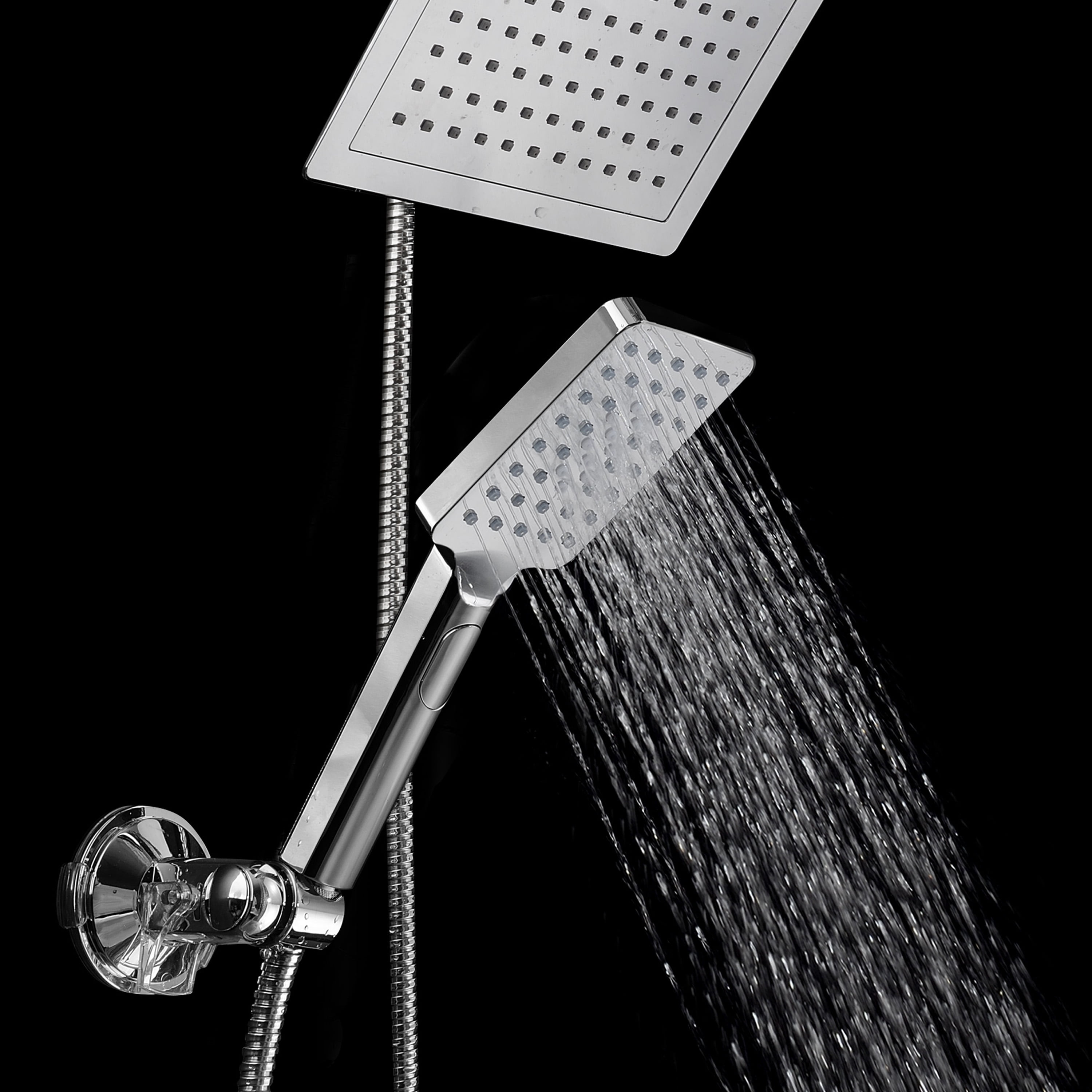 - Low-reach angle-adjustable hand shower wall bracket that lets you position the hand shower at desired angle anywhere on wall or bathtub surface, using power suction or adhesive (included)