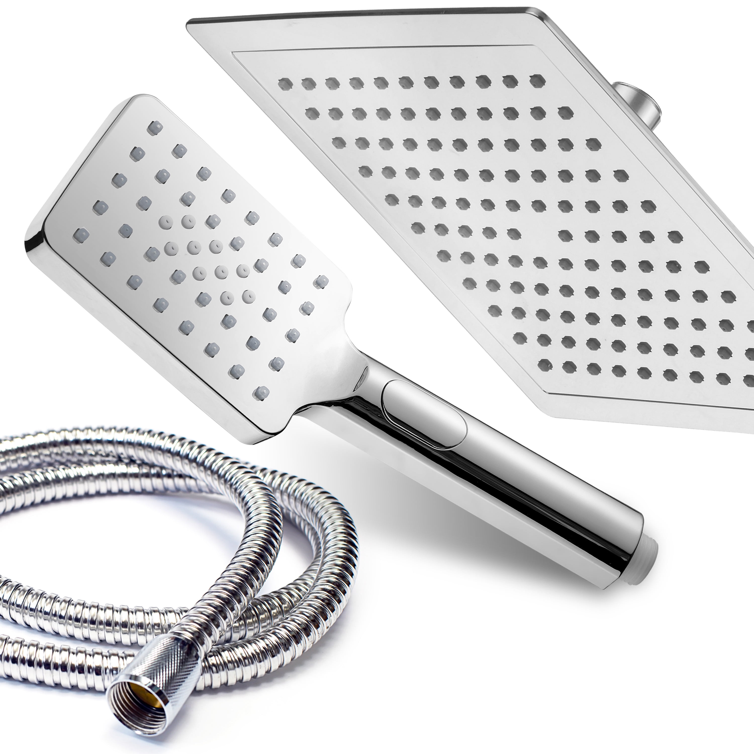 Rainfall shower combo with push-button flow control: Use the luxurious rainfall shower head for a drenching shower experience or pamper yourself with the new state-of-the-art handheld shower head featuring a convenient flow control button. Switch between flow settings with the same hand you hold it with, no dial to turn. Place the handheld shower anywhere in the shower for easy reach and convenience