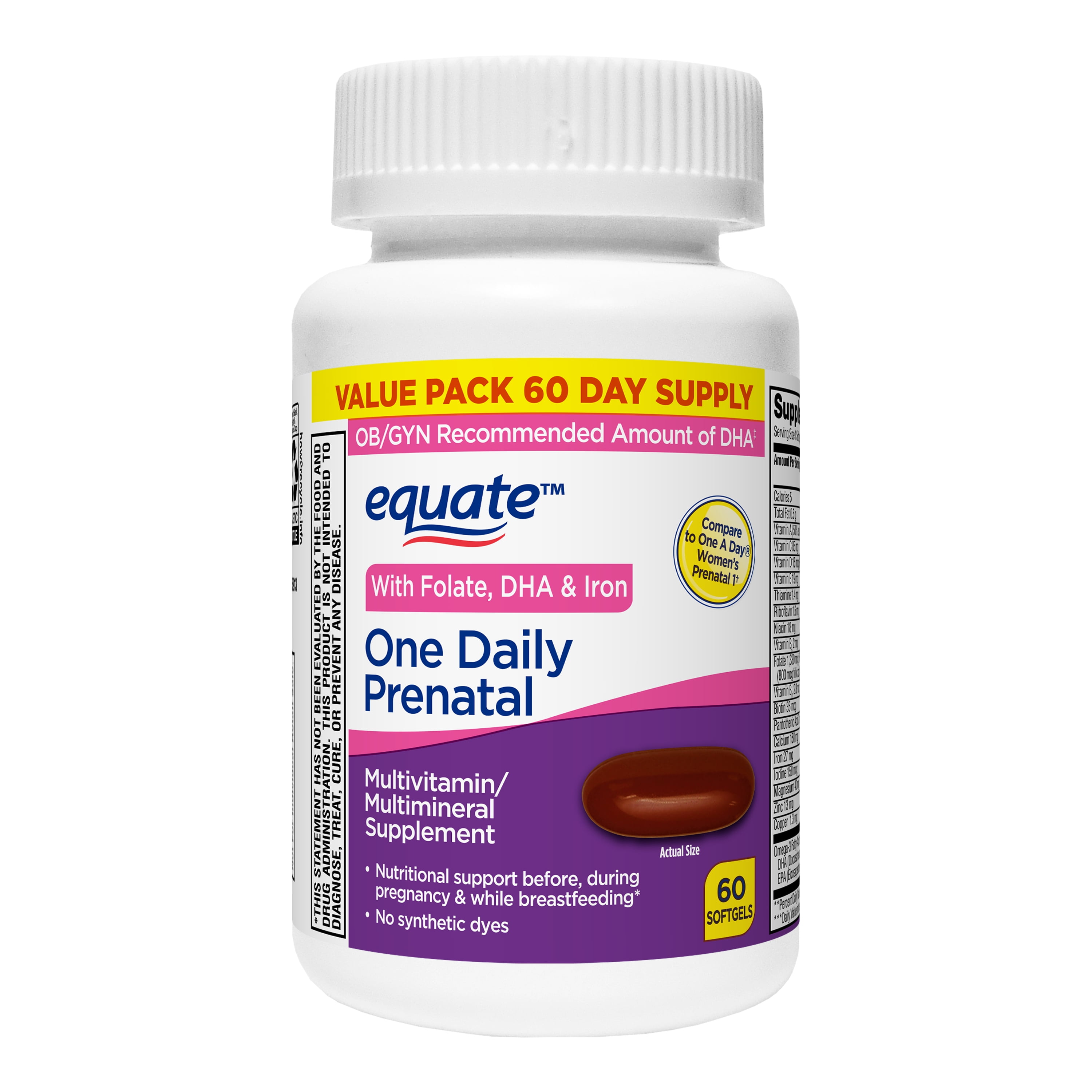 Equate One Daily Prenatal Softgels Multivitamin/Multimineral Supplement Value Pack, 60 Count: