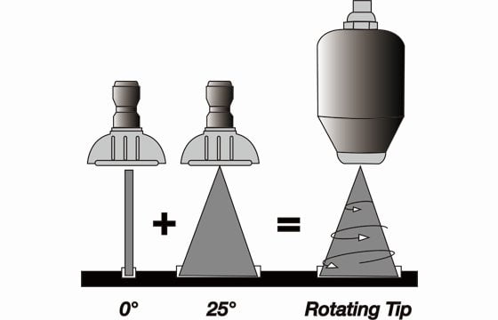 - Provides 200% cleaning efficiency over a 25° flat fan nozzle.
