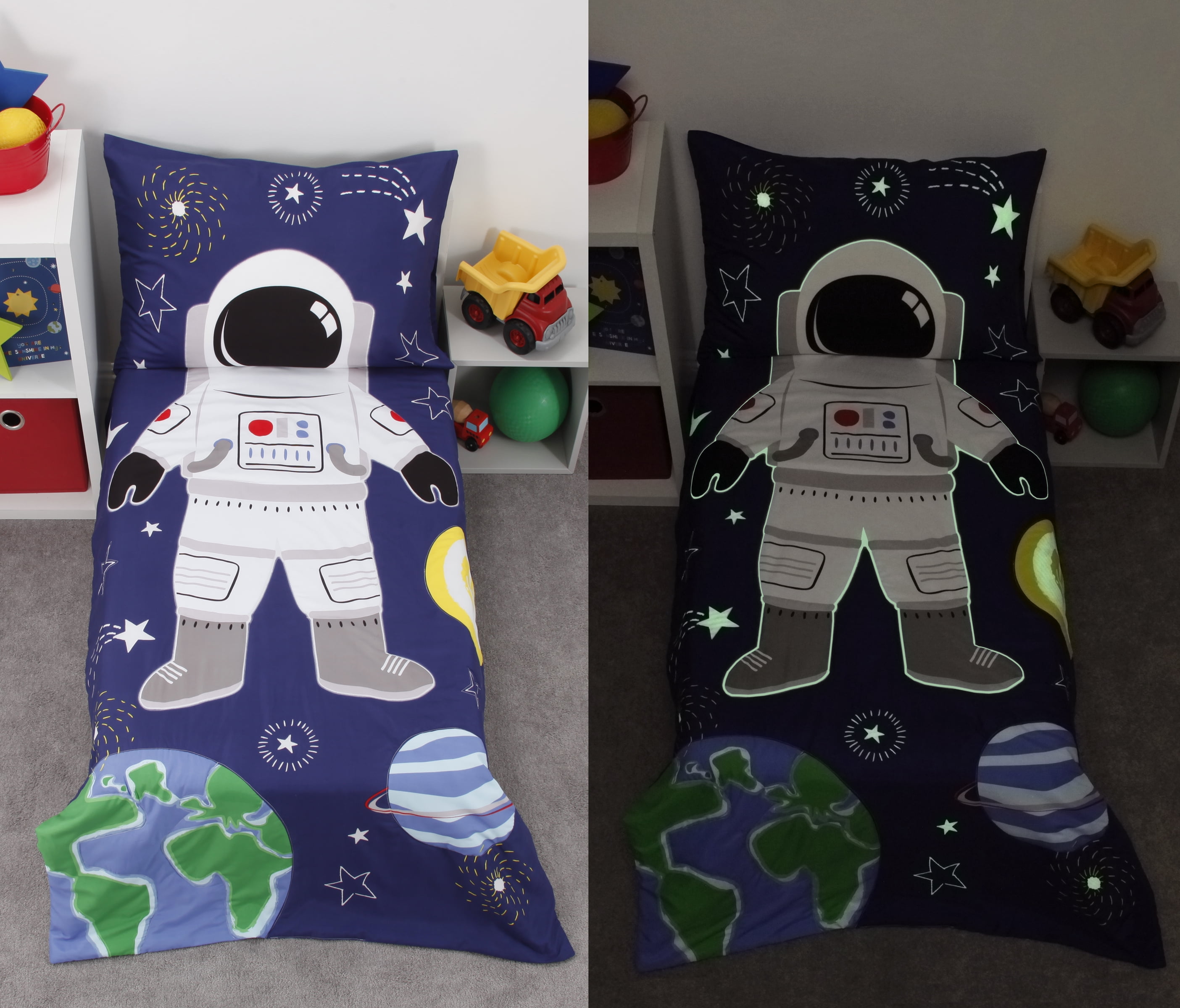 Tags: Bed Set, Bottom Sheet, Fitted Bottom, Fitted Bottom Sheet, Flat Top, Flat Top Sheet, Kids Space, Kids Space Astronaut, Piece Toddler, Piece Toddler Bed, Reversible Pillowcase, Space Astronaut, Toddler Bed, Toddler Bed Set, Top Sheet, Yellow Glow