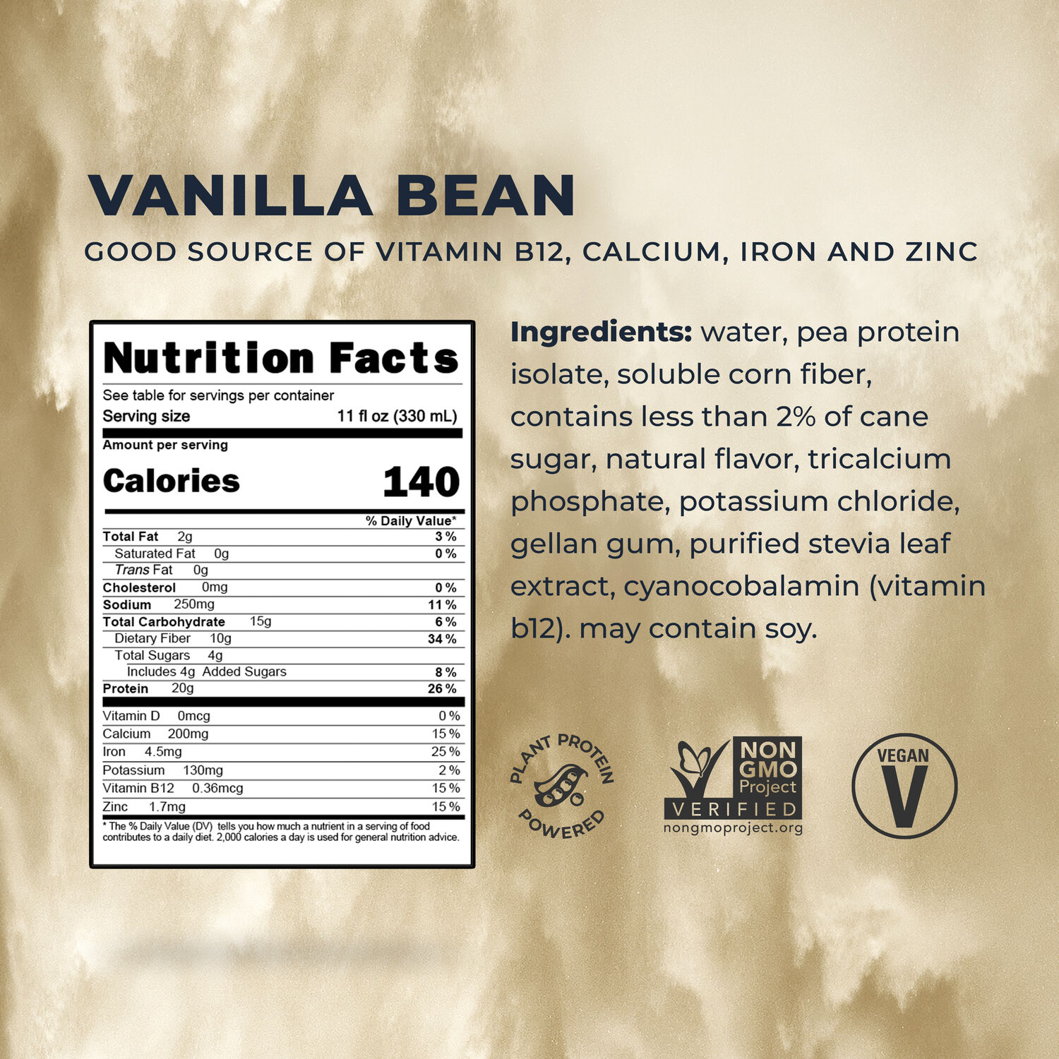 - 20 GRAMS OF PLANT-BASED PROTEIN sourced from peas, a delicious and more sustainable source of protein.